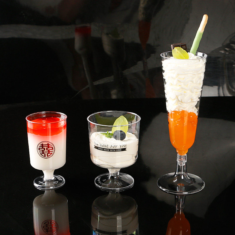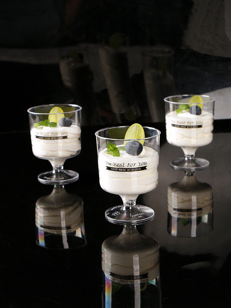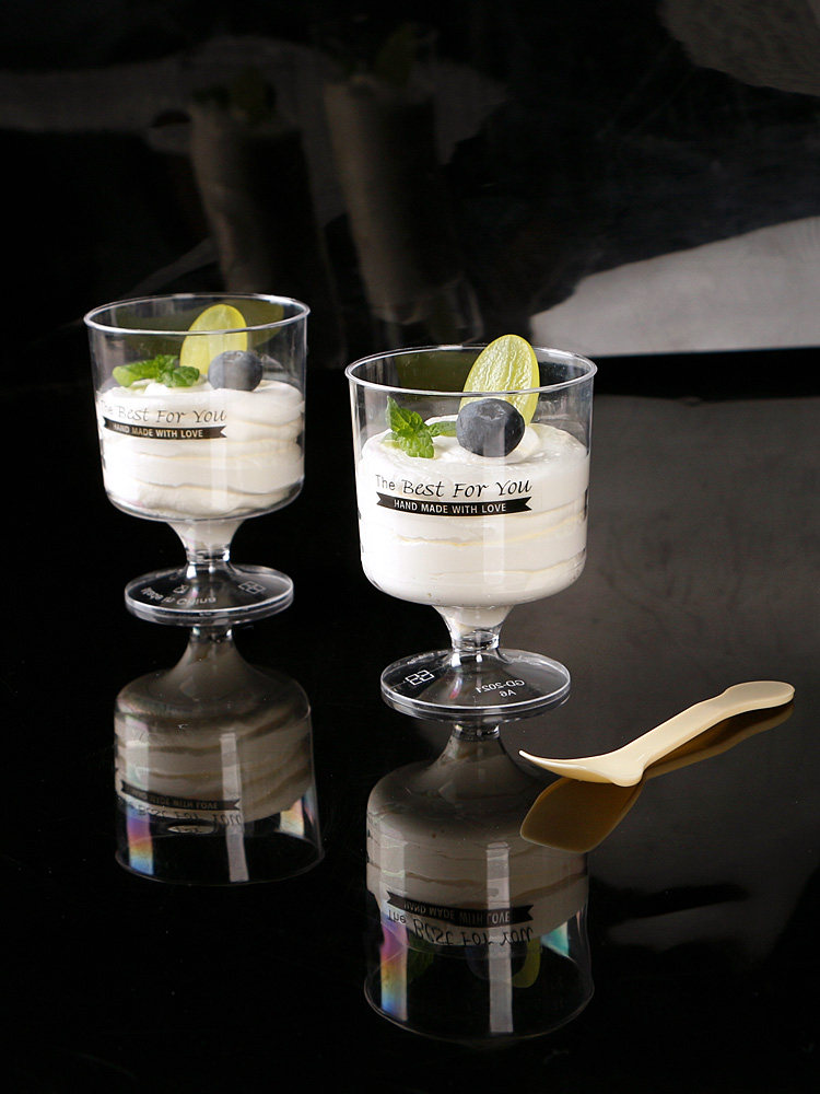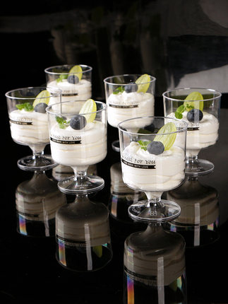 一次性透明硬塑料布丁杯果冻冰淇淋杯一体式高脚酒杯慕斯甜品杯