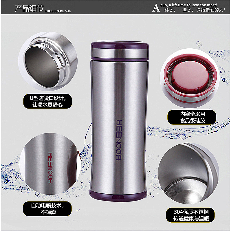 希诺保温杯男女士不锈钢水杯高档真空商务直身定制刻字车载保温杯