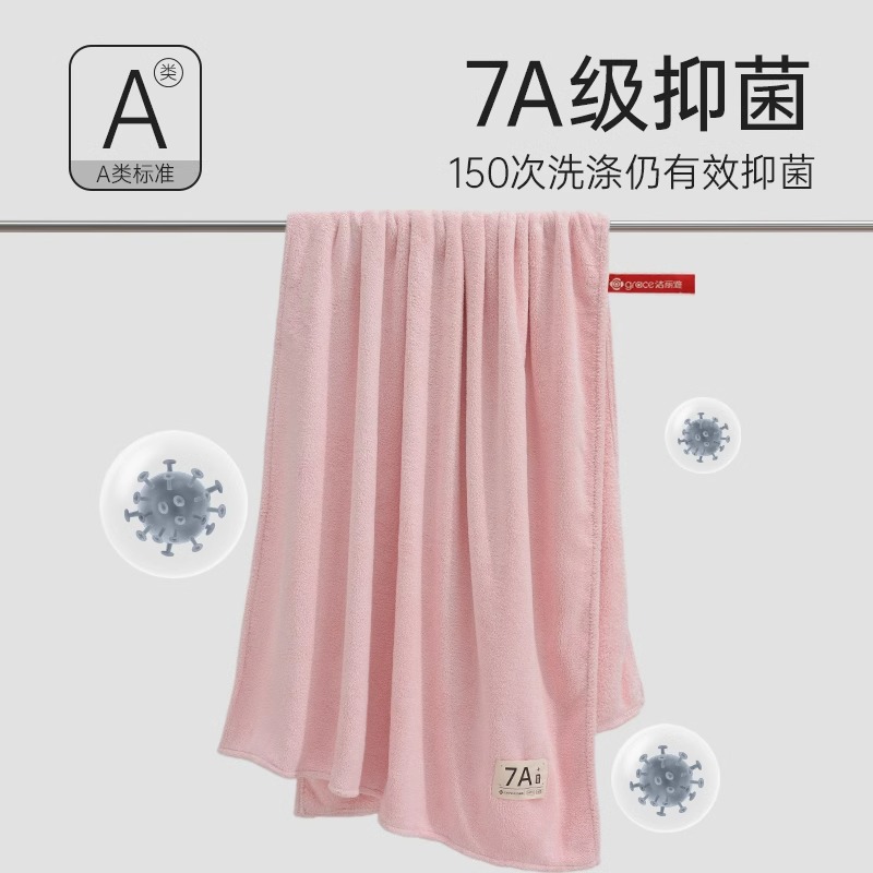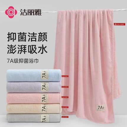 洁丽雅7A抗菌浴巾珊瑚绒柔软吸水不易掉毛家用成人男女洗澡裹巾