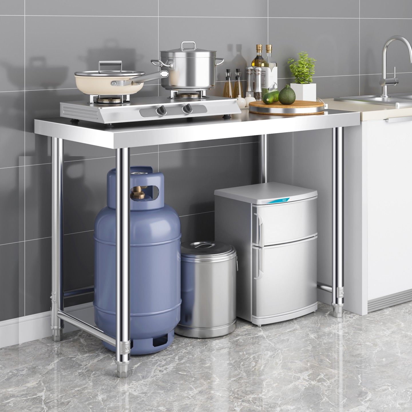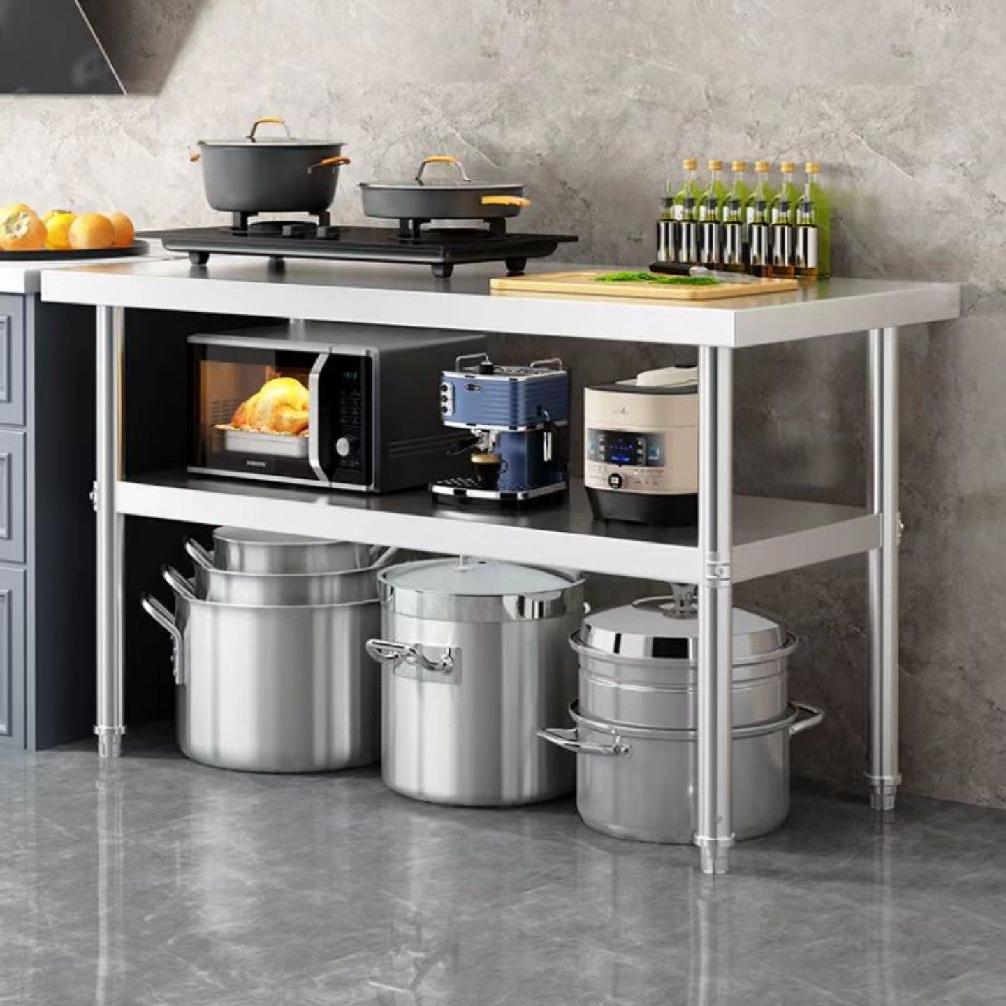 厨房不锈钢台面板加厚商用工作台切菜台三层案板家用燃气灶操作台