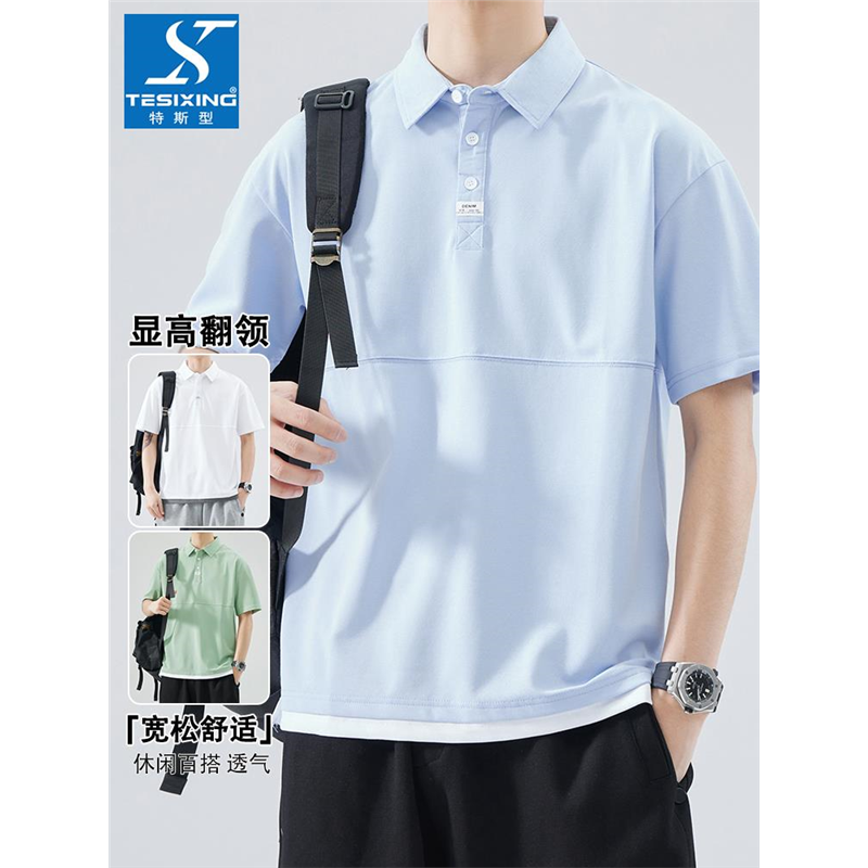 以纯YISHIONpolo衫男士宽松休闲翻领短袖夏季日系潮流简约半袖t恤
