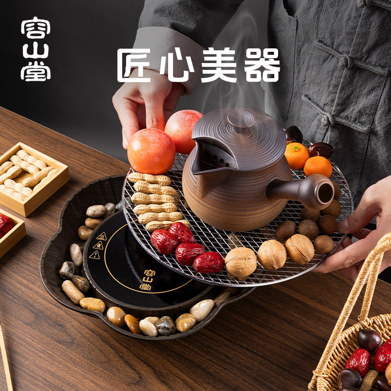 容山堂麦饭石粗陶罐罐茶新款煮茶器带盖烤奶茶罐电陶炉围炉煮茶炉