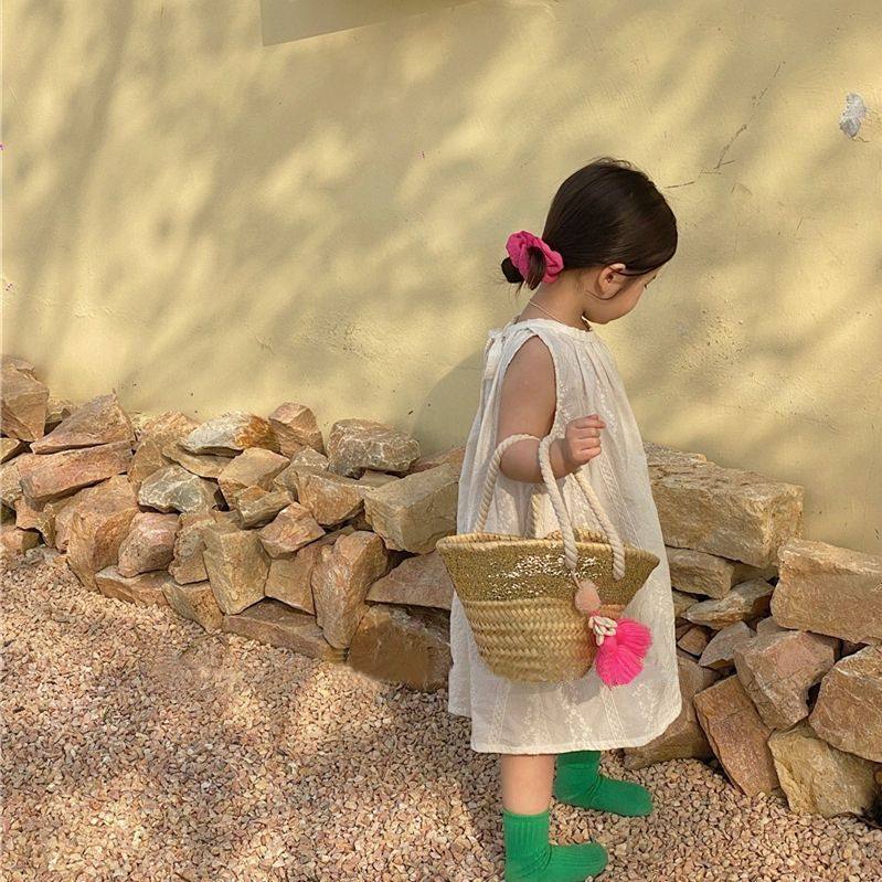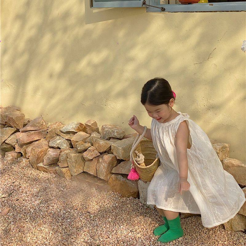 宝宝夏季连衣裙2025连衣裙儿童女森系清新蕾丝无袖背心白色连衣裙