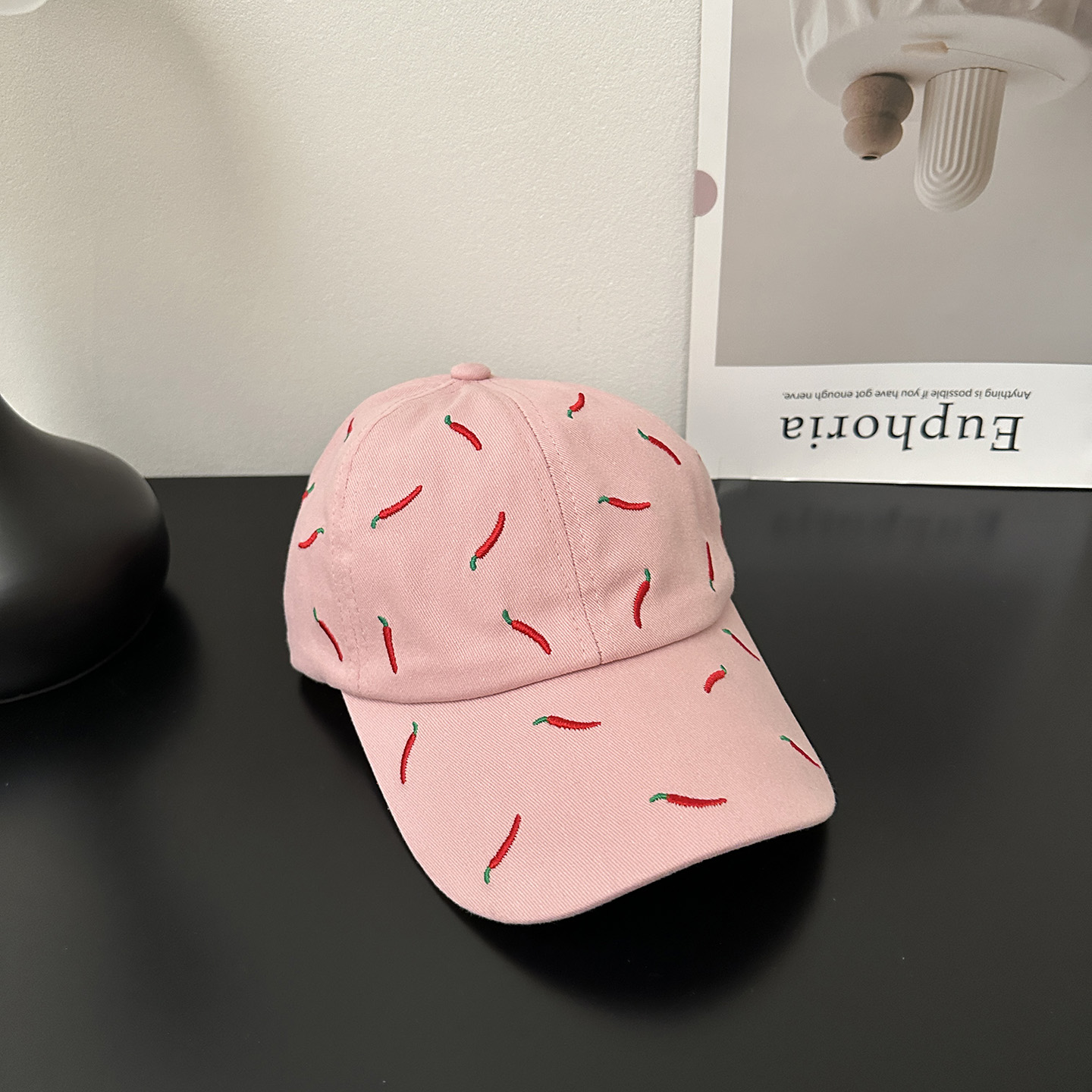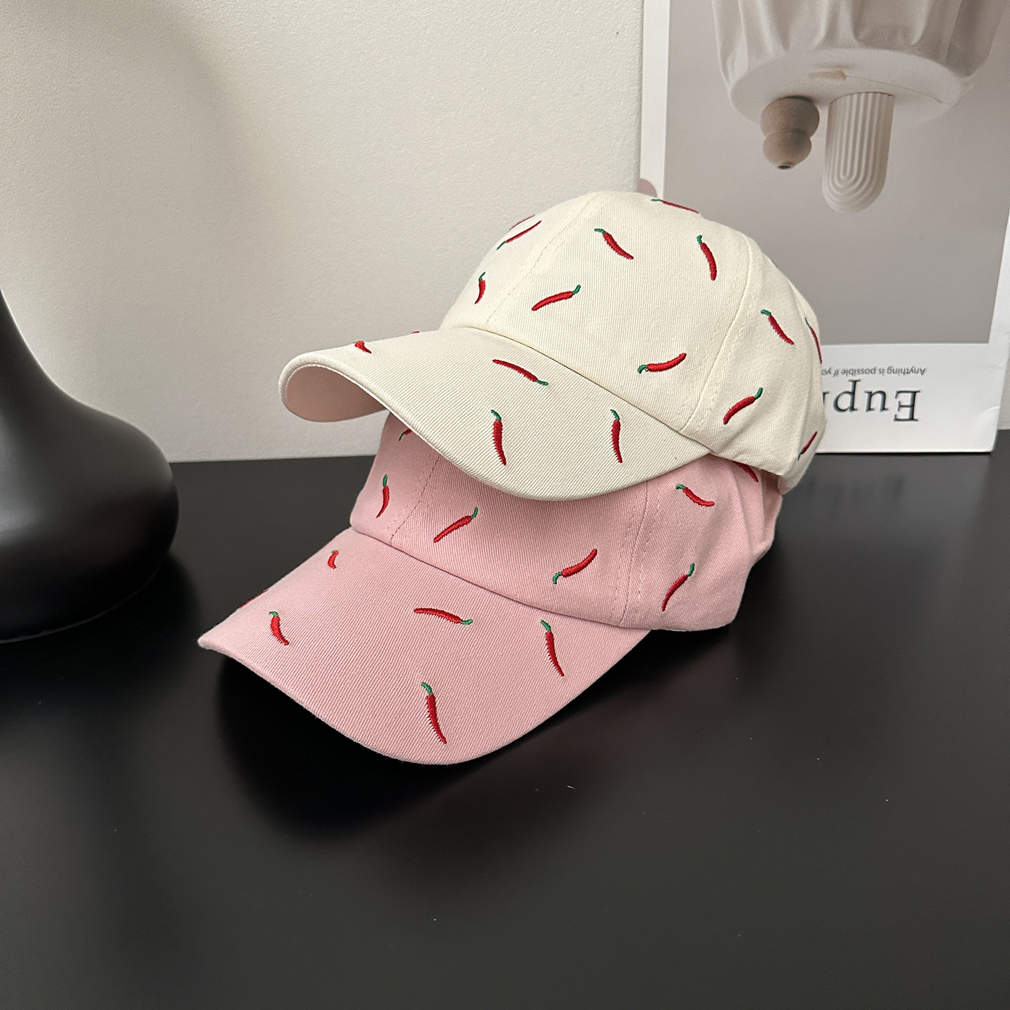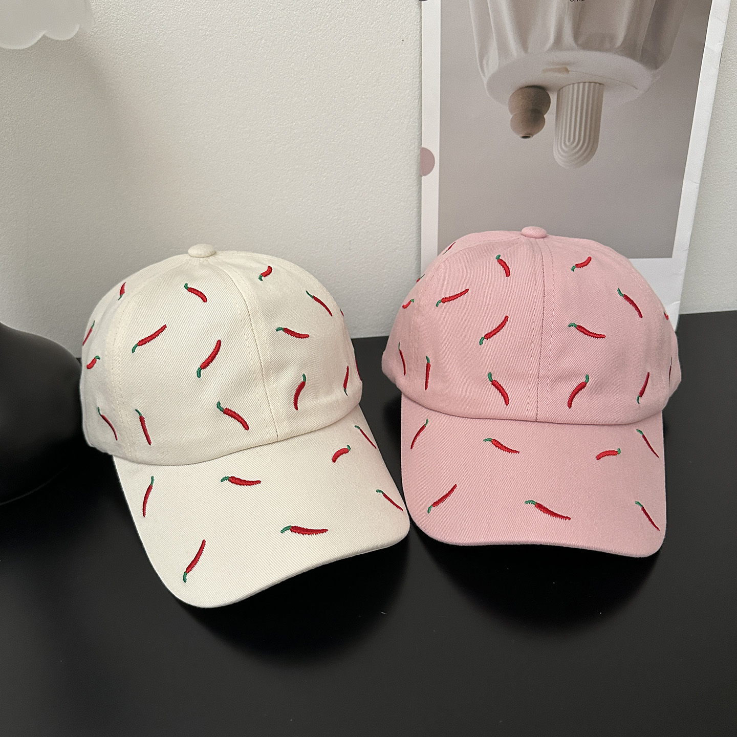 韩国刺绣可爱小辣椒棒球帽女夏季软顶大头围新款百搭潮牌鸭舌帽子
