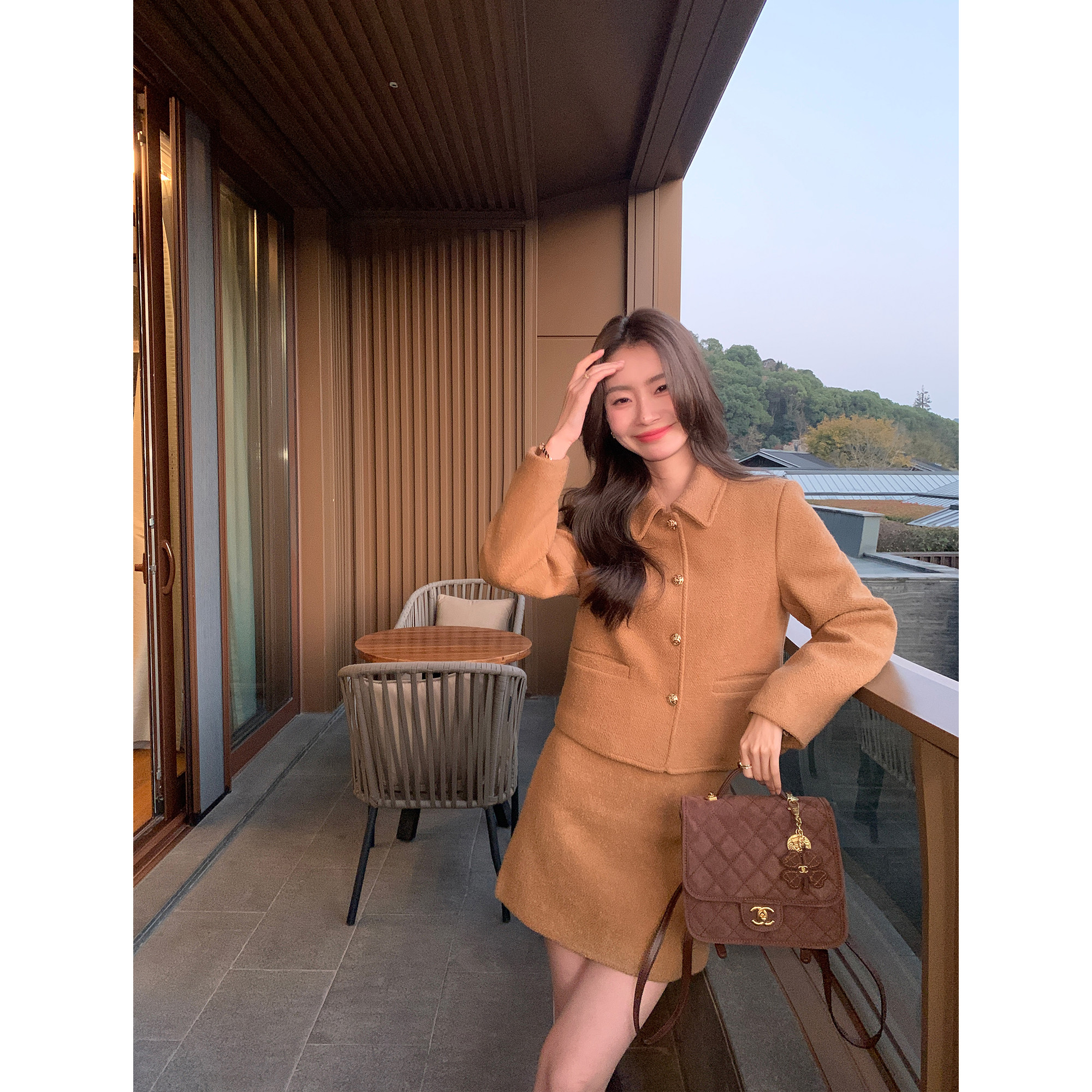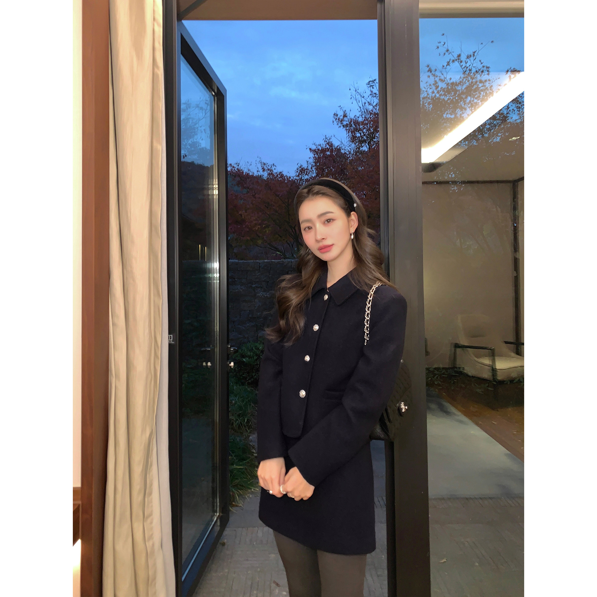 pusumede miu系千金 气质优雅短款毛呢外套女高腰a字半身短裙套装