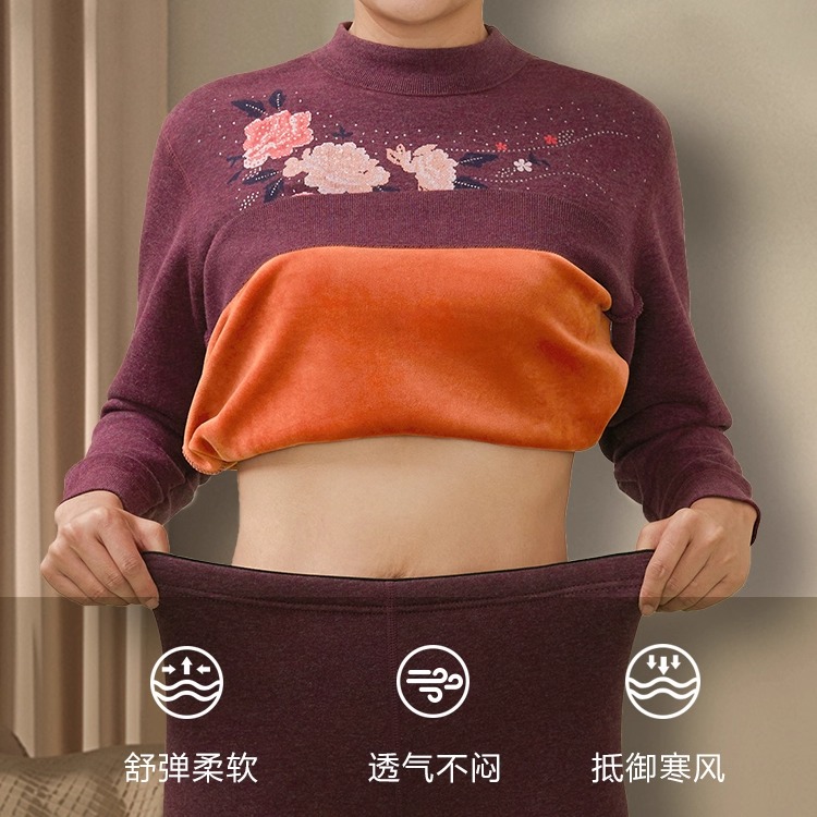 恒源祥加绒加厚保暖内衣男女中老年纯棉套装中高领冬送长辈送父母