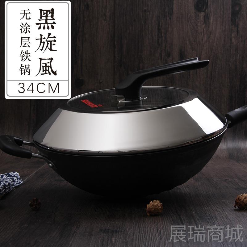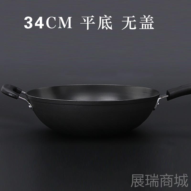 高档华用邦黑旋风铁锅平底圆铸铁锅传无涂层统家炒菜底燃气灶锅具