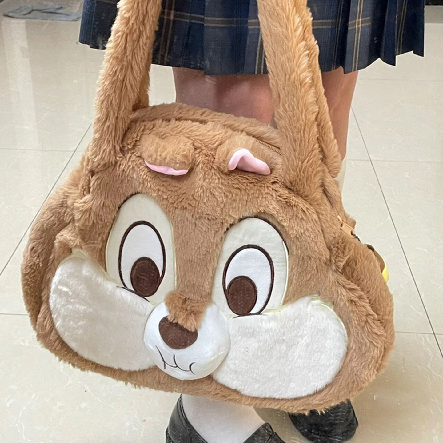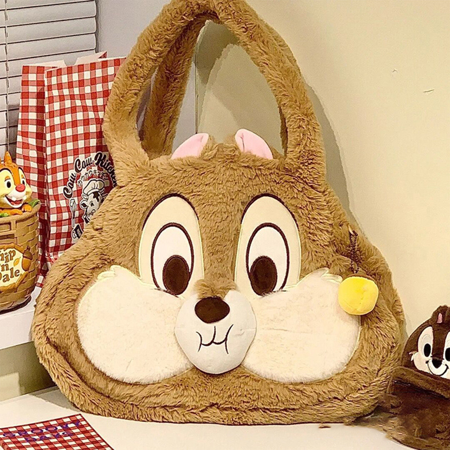 迪士尼同款包包奇奇蒂蒂女可爱上课包单肩大容量托特包包毛毛包潮