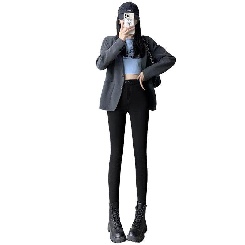 黑色打底裤女外穿春秋款薄款高腰显瘦百搭紧身弹力铅笔小脚小黑裤