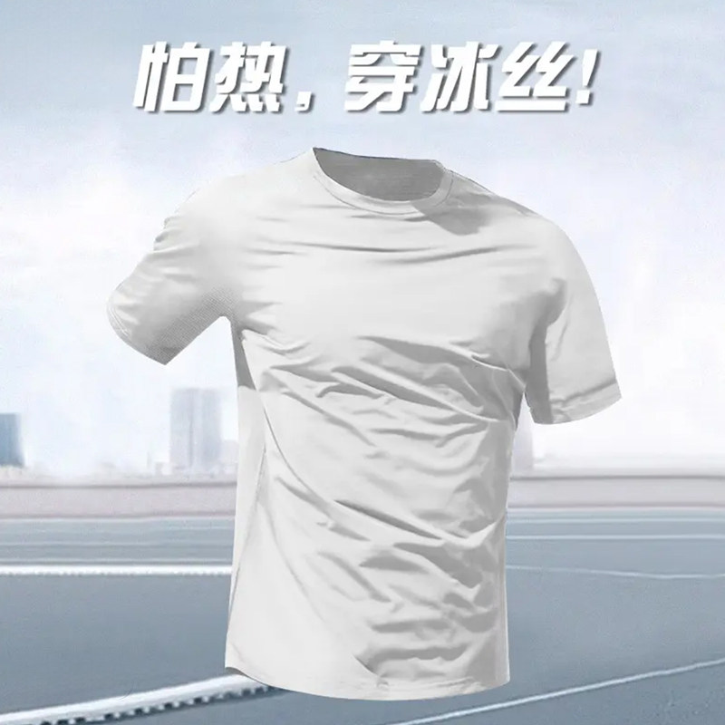 SPORT冰丝速干短袖2025新款夏季T恤宽松男款休闲运动透气圆领薄款