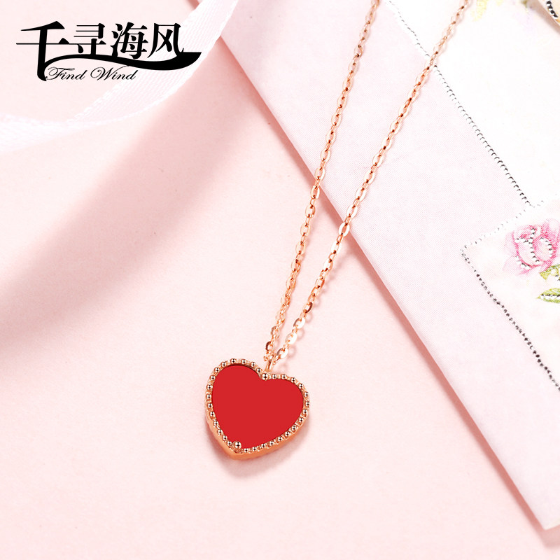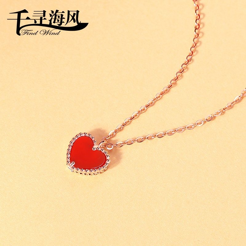 925银项链镀玫瑰金红玛瑙银项坠2.14情人节礼物套装