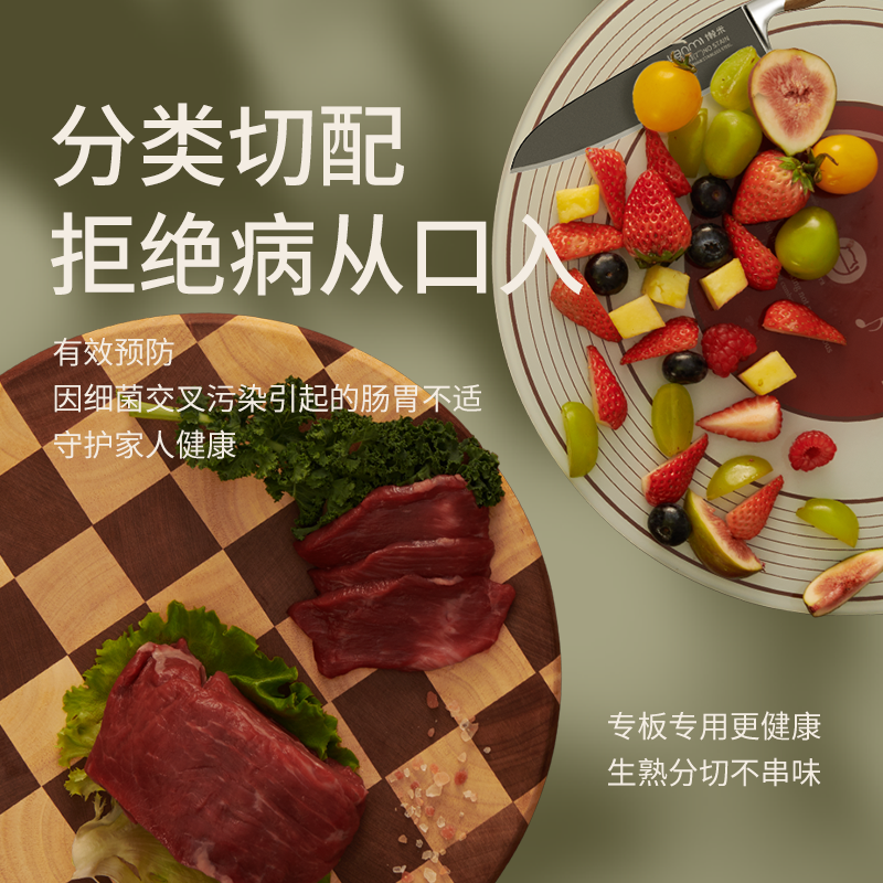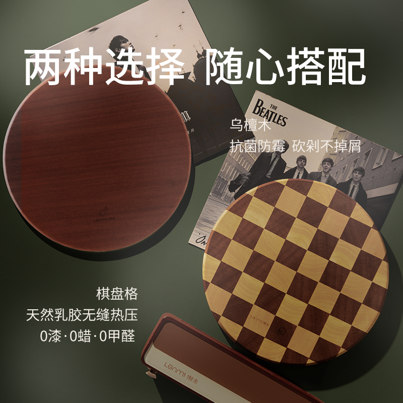 懒米唱片菜板套装相思木棋盘格抗菌防霉分类收纳家用实木切菜砧板