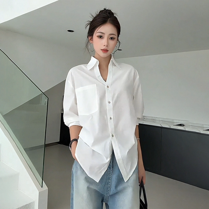 白色POLO领衬衫女长袖春秋时尚宽松女装通勤面试内搭上衣打底衬衣