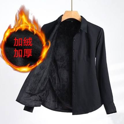 纯色加厚保暖衬衣女2024秋冬季韩版宽松学生加绒打底洋气衬衫上衣