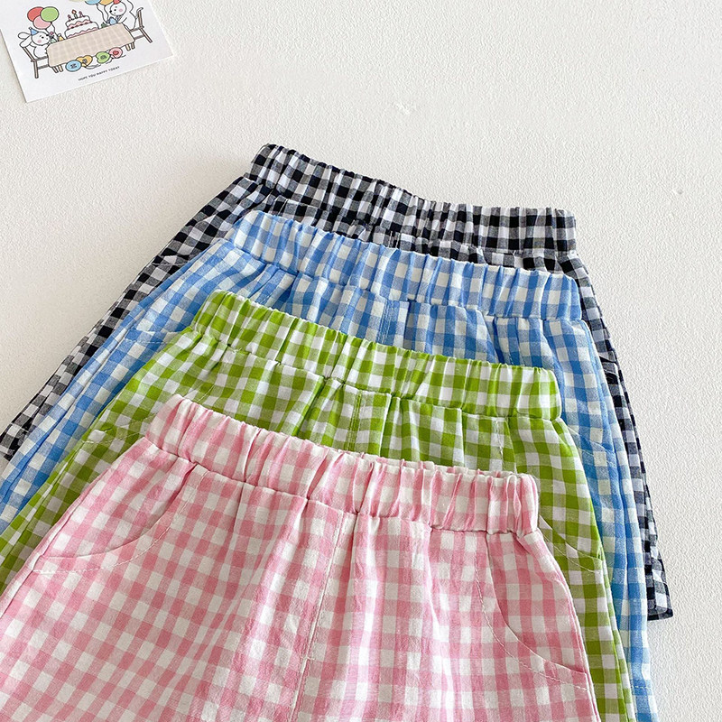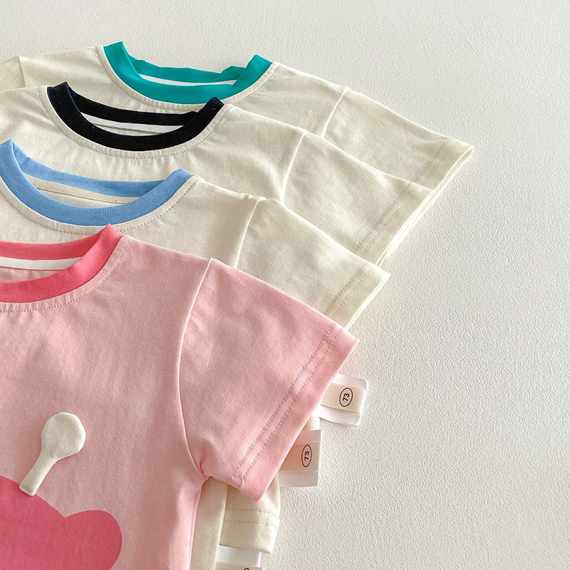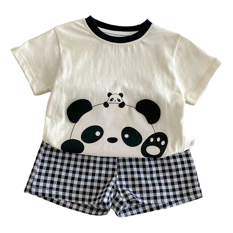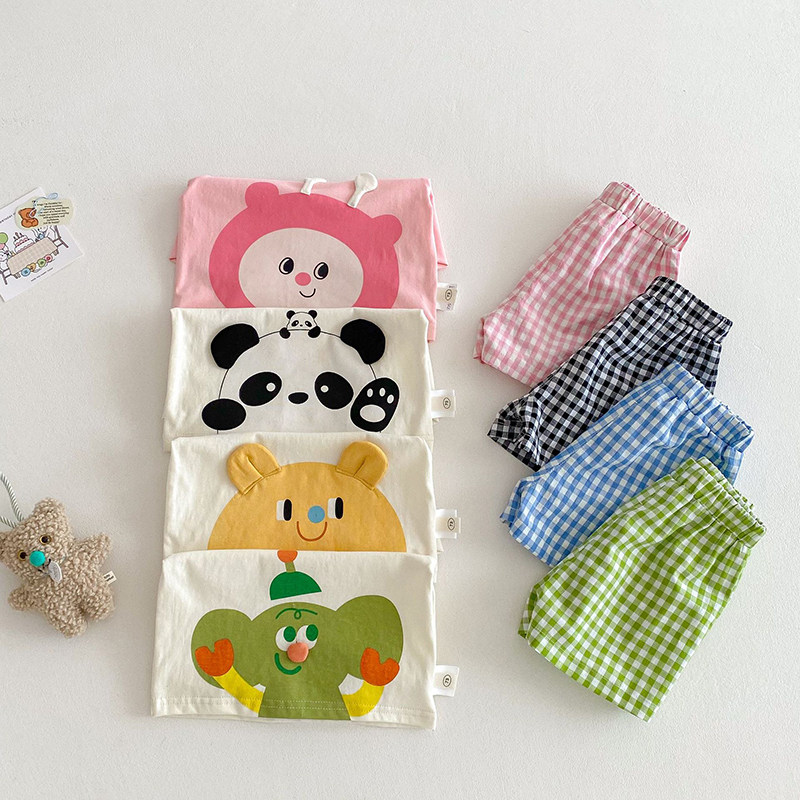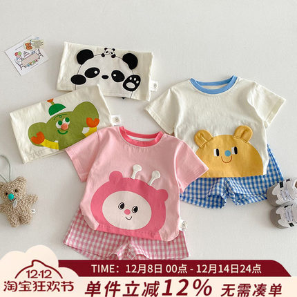 儿童卡通套装夏季女童洋气短袖T恤薄男童格子短裤两件套婴儿衣服