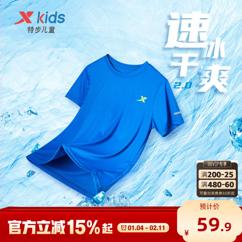 特步童装儿童短袖T恤男童速干衣2026夏季新款大童衣服短T运动夏装