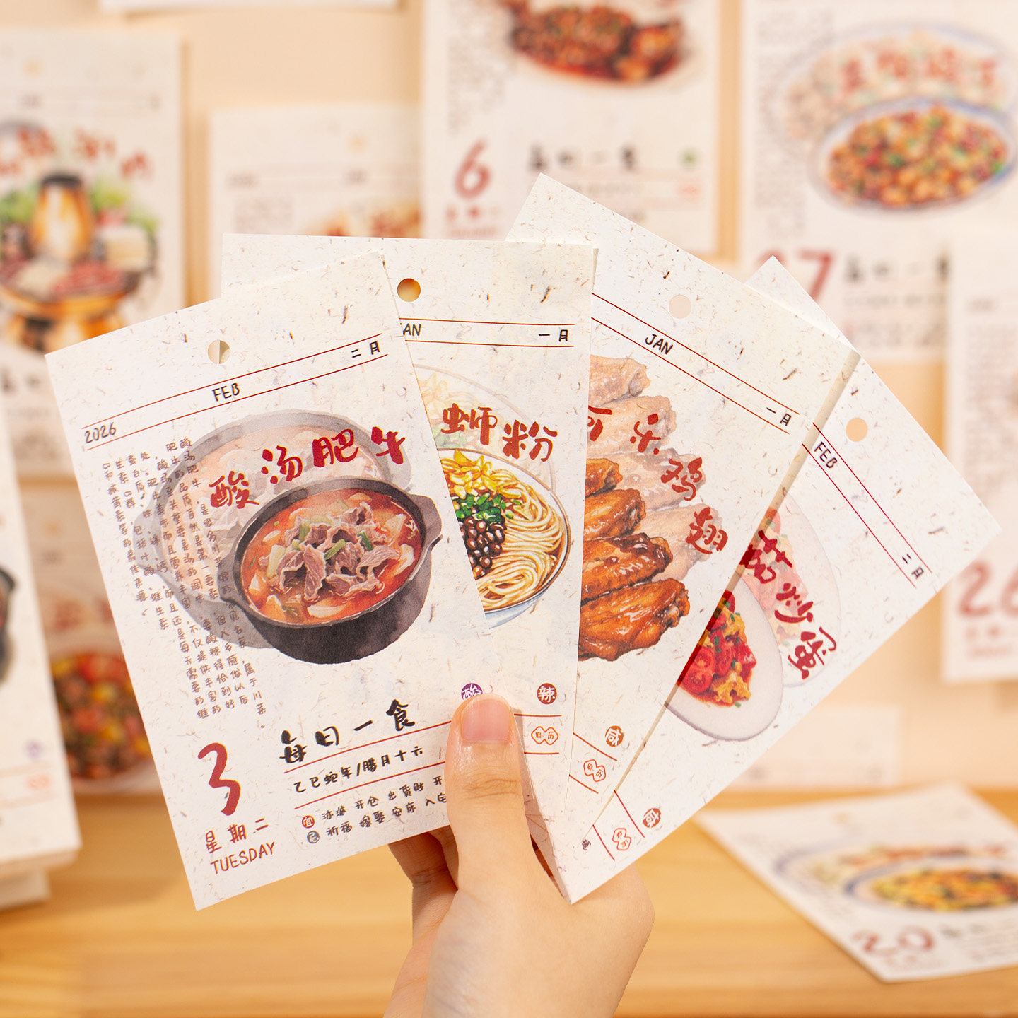 2026新款每日一食食谱台历 高级感新款趣味美食推荐治愈系文艺高颜值翻页日历创意桌面摆件