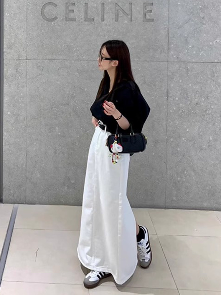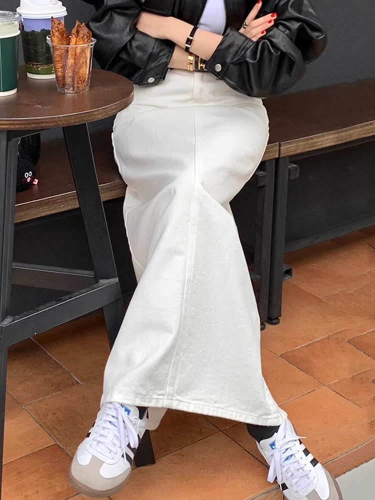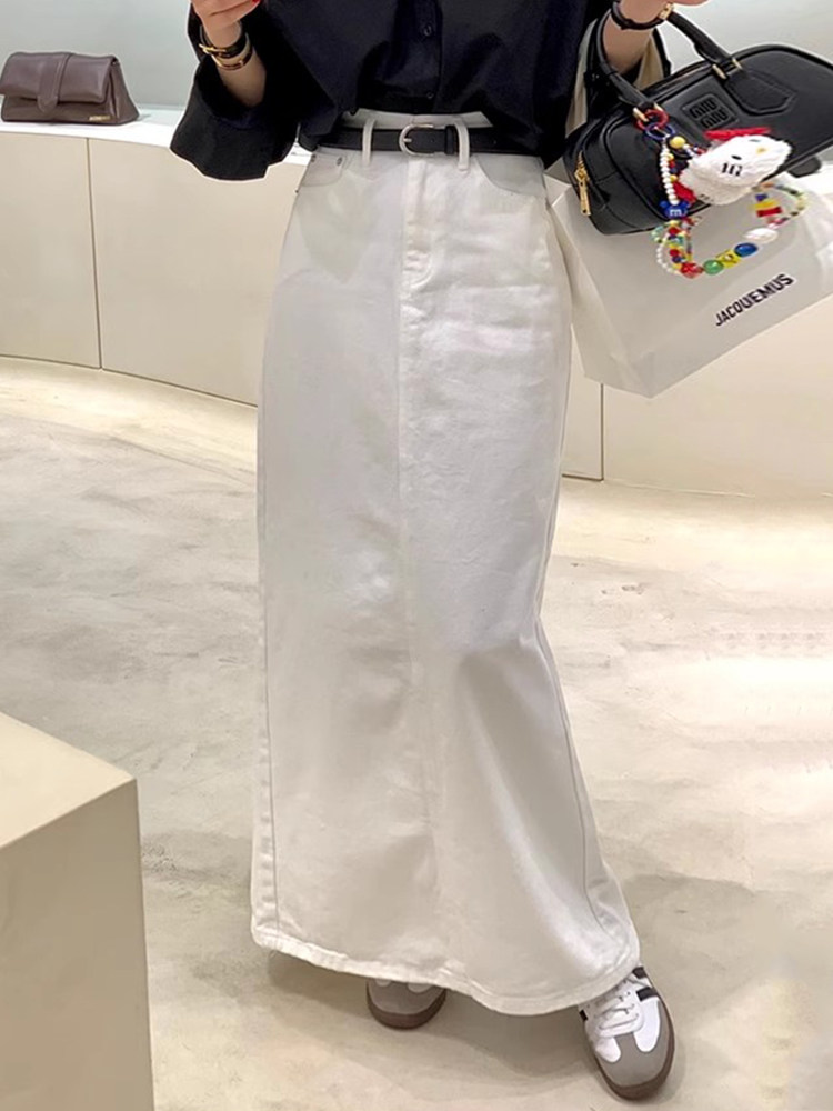 韩国chic春季小众气质后开叉设计感高腰百搭显瘦直筒牛仔半身裙女