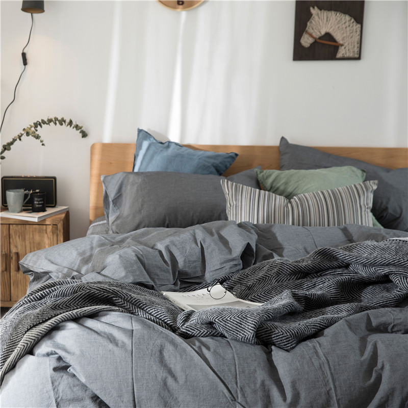 简约纯棉全棉水洗棉四件套1.8m床上用H品宿舍单双人被套床单床笠