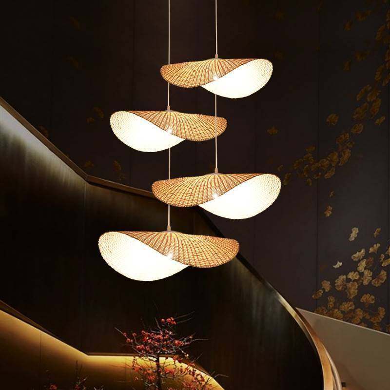 新中式吊灯竹编禅意茶室民宿三头餐厅酒店楼梯竹艺卧室灯日式吊灯