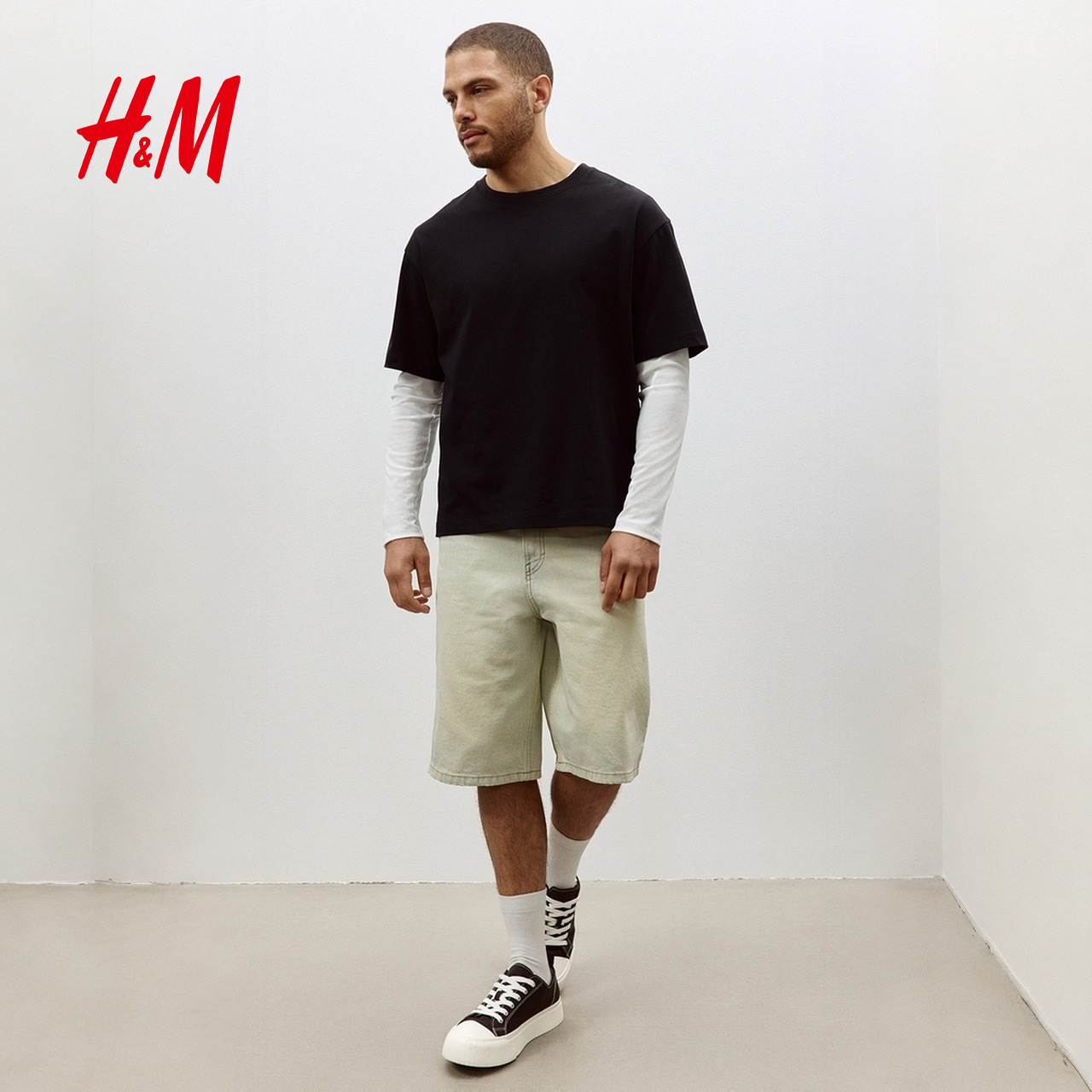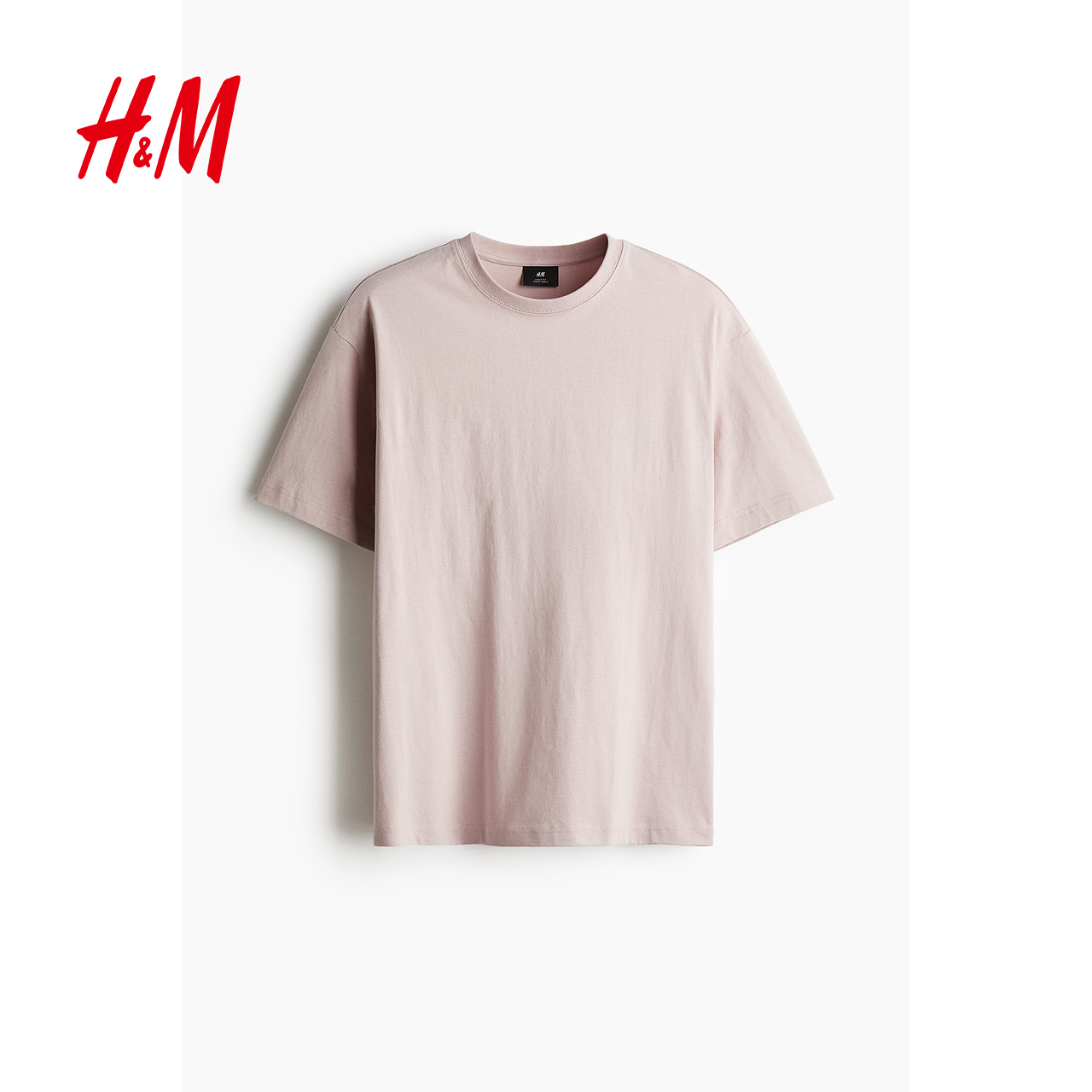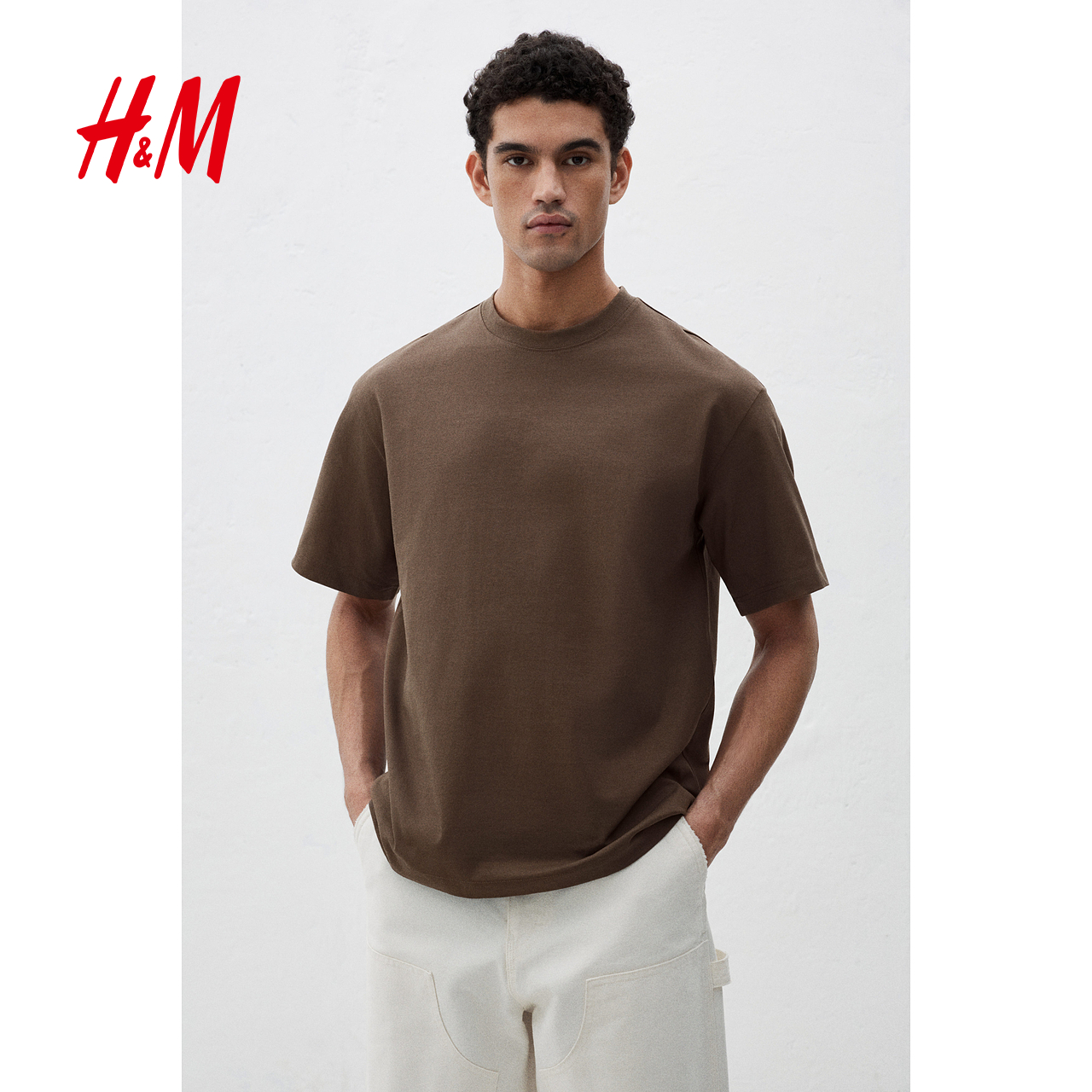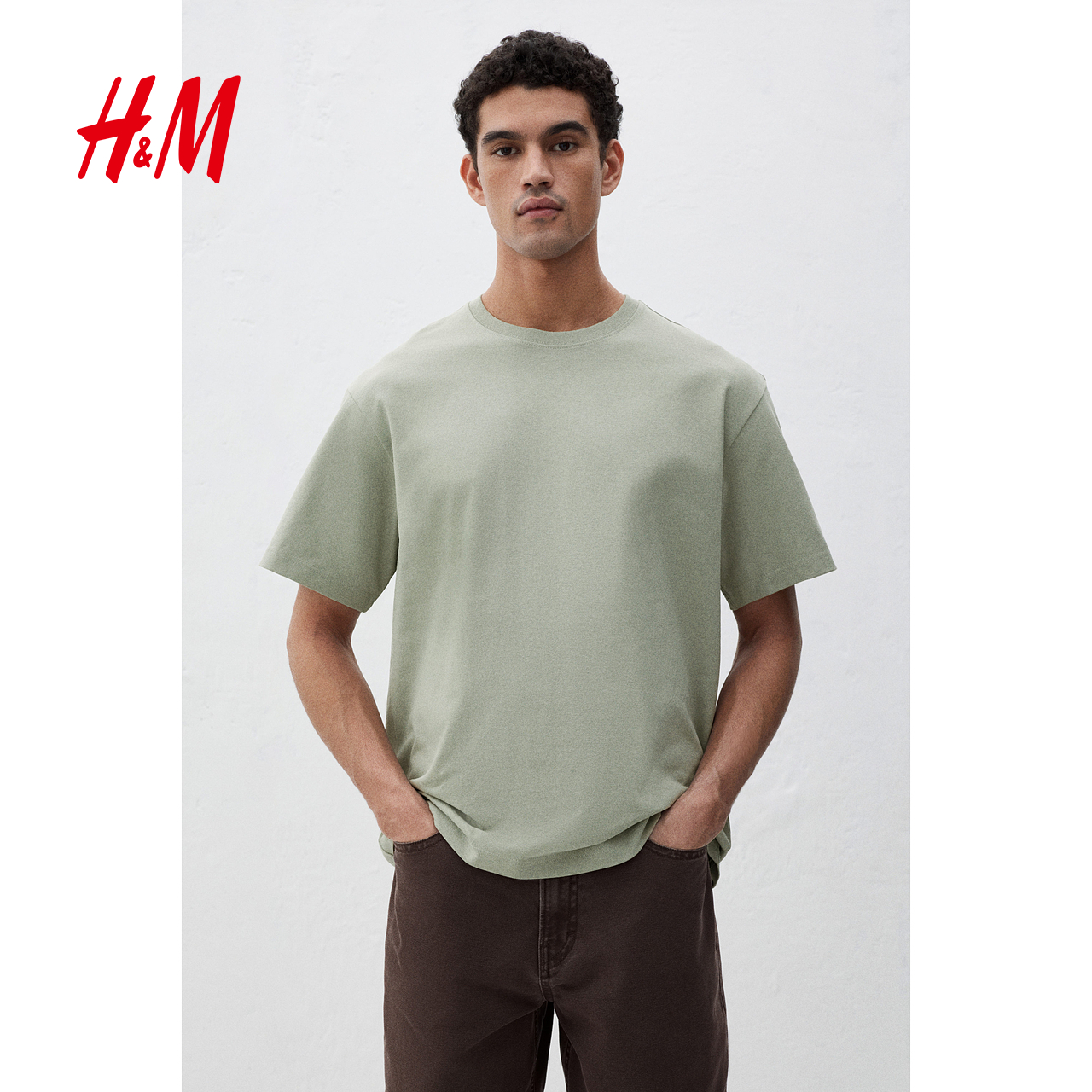 HM男装女装T恤情侣装重磅纯棉简约宽松透气圆领短袖打底衫0608945