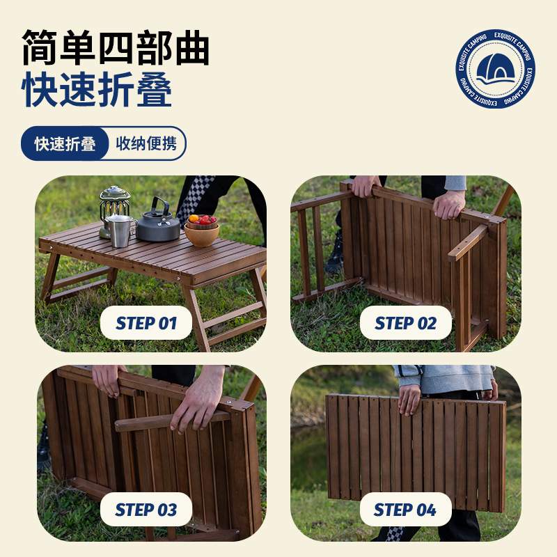 户外实木折叠桌野营便携折叠桌露营烧烤小桌子自驾游置物架野餐桌