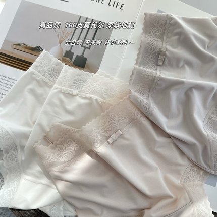 春夏轻薄100支莫代尔女士内裤蕾丝边中腰包臀三角裤柔软透气短裤