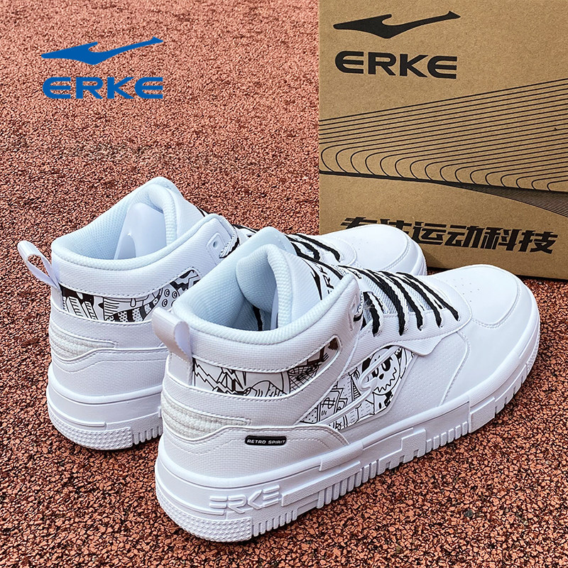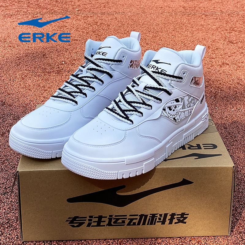 【电池熊猫】鸿星尔克男款轻便防滑耐磨高帮板鞋百搭休闲运动鞋