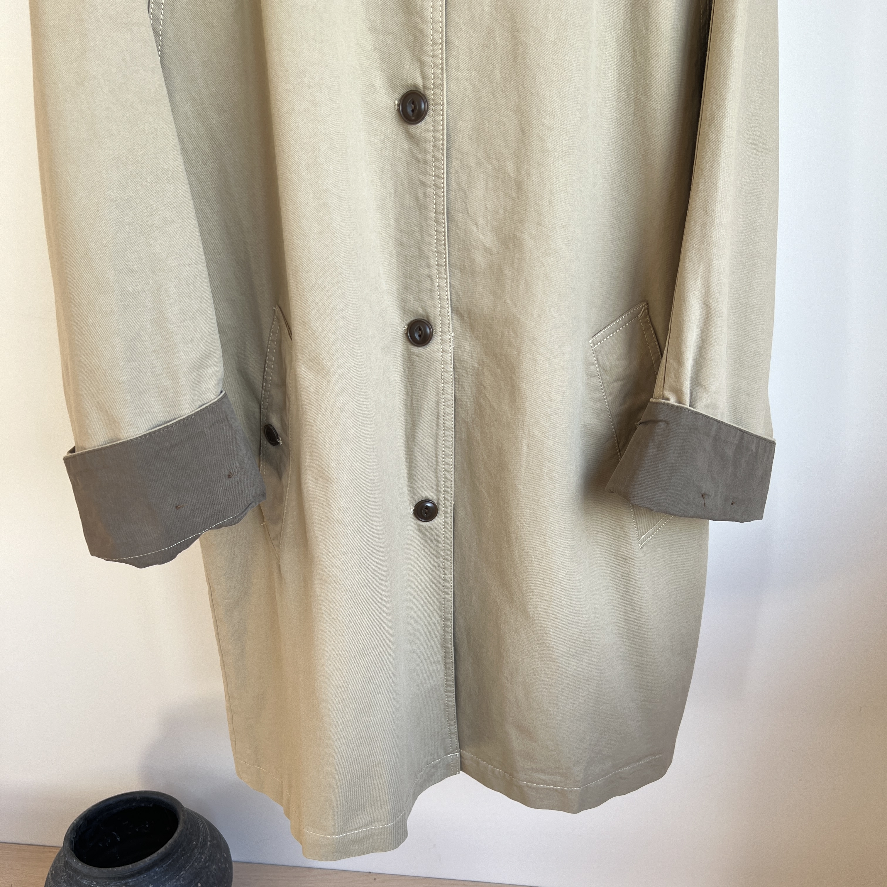 542#秋冬撞色韩系风拼接风衣外套落肩袖中长款翻领风衣女