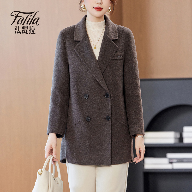 西装领双面零羊绒大衣女中长款秋冬新款双面呢羊毛呢外套中年妈妈