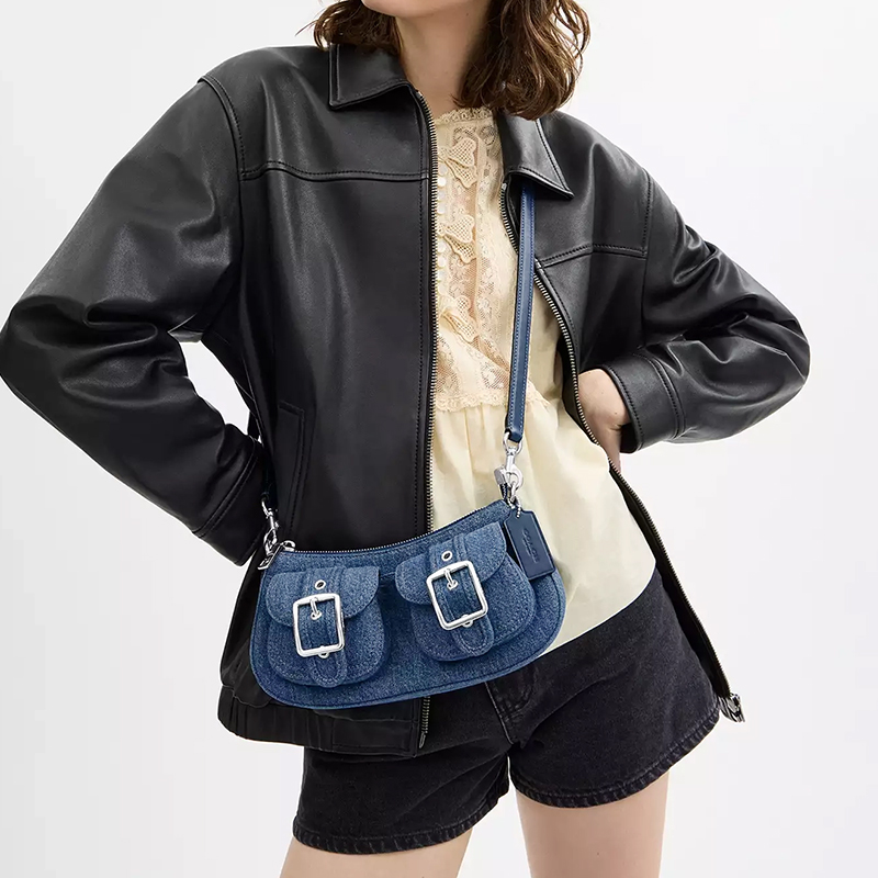 【自营】COACH/蔻驰女包腋下包单肩包机车风牛仔斜挎包轻奢礼物女