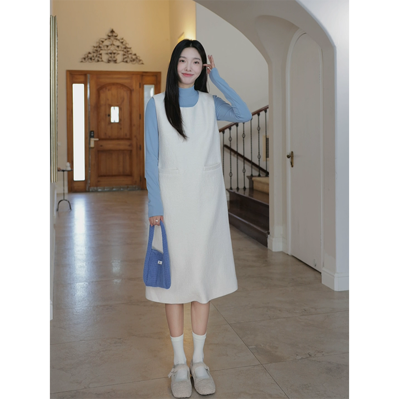 郭九九呢 羊毛简约气质宽松背心连衣裙秋季百搭高领打底衫T恤上衣