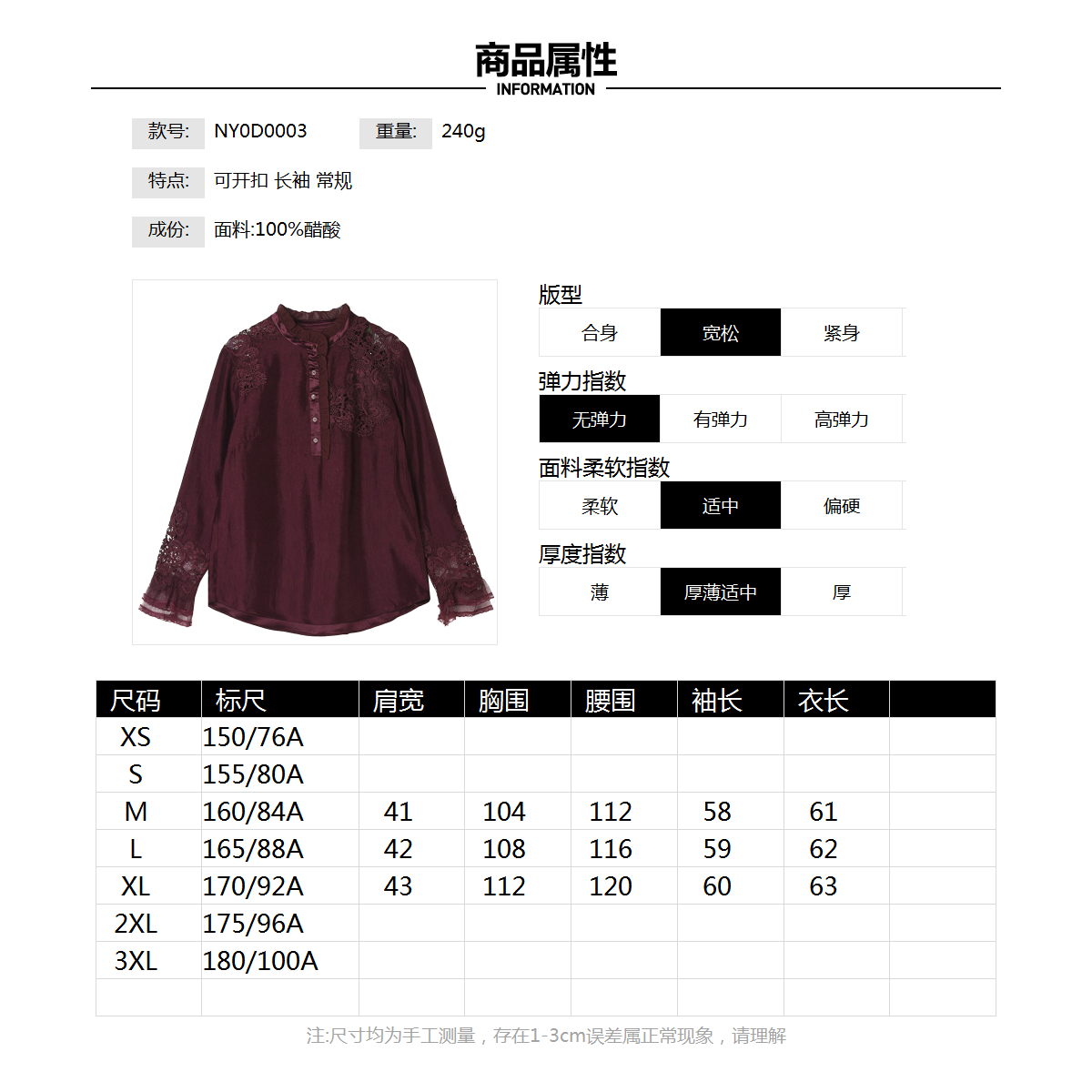 深圳南油NY0D0003含醋酸宽松上衣可开扣衬衫女1.1春