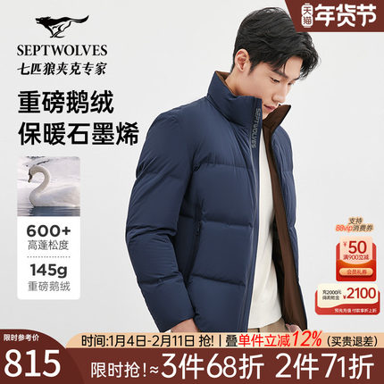 [石墨烯]七匹狼鹅绒羽绒服男士2025冬季新款休闲厚款三防夹克外套