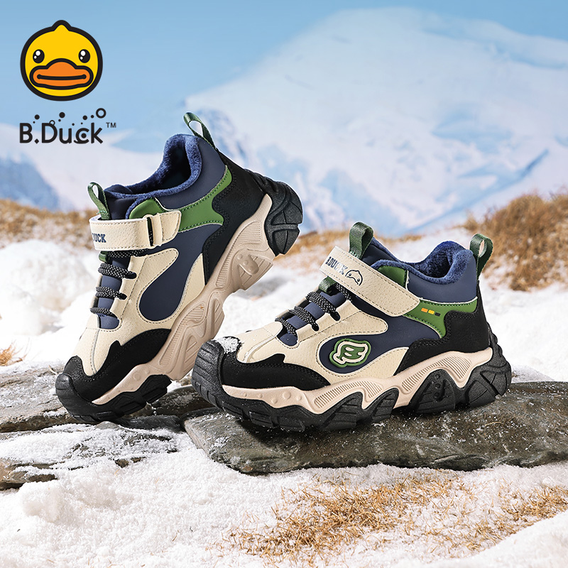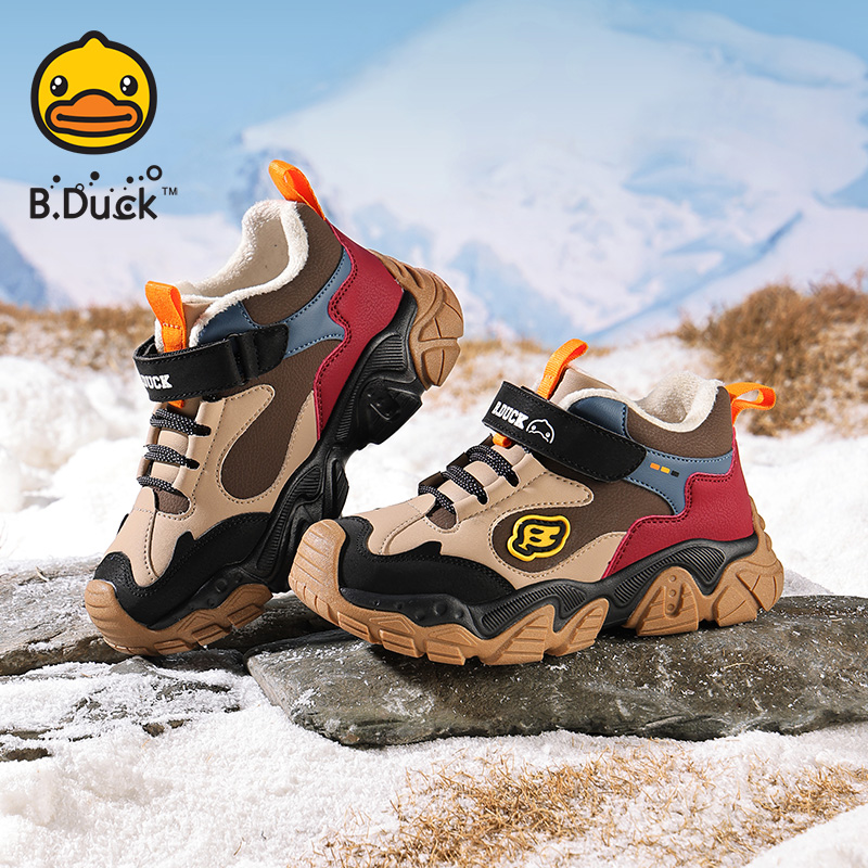 bduck小黄鸭男童棉鞋户外保暖防滑运动鞋冬季新款中大童加绒鞋子