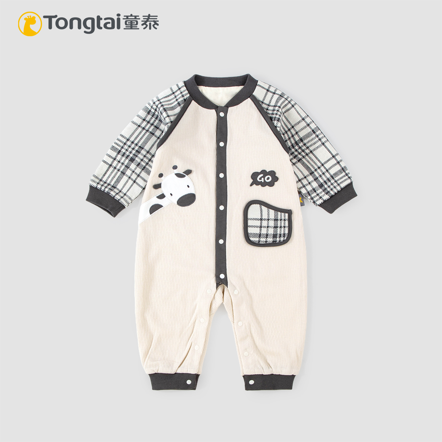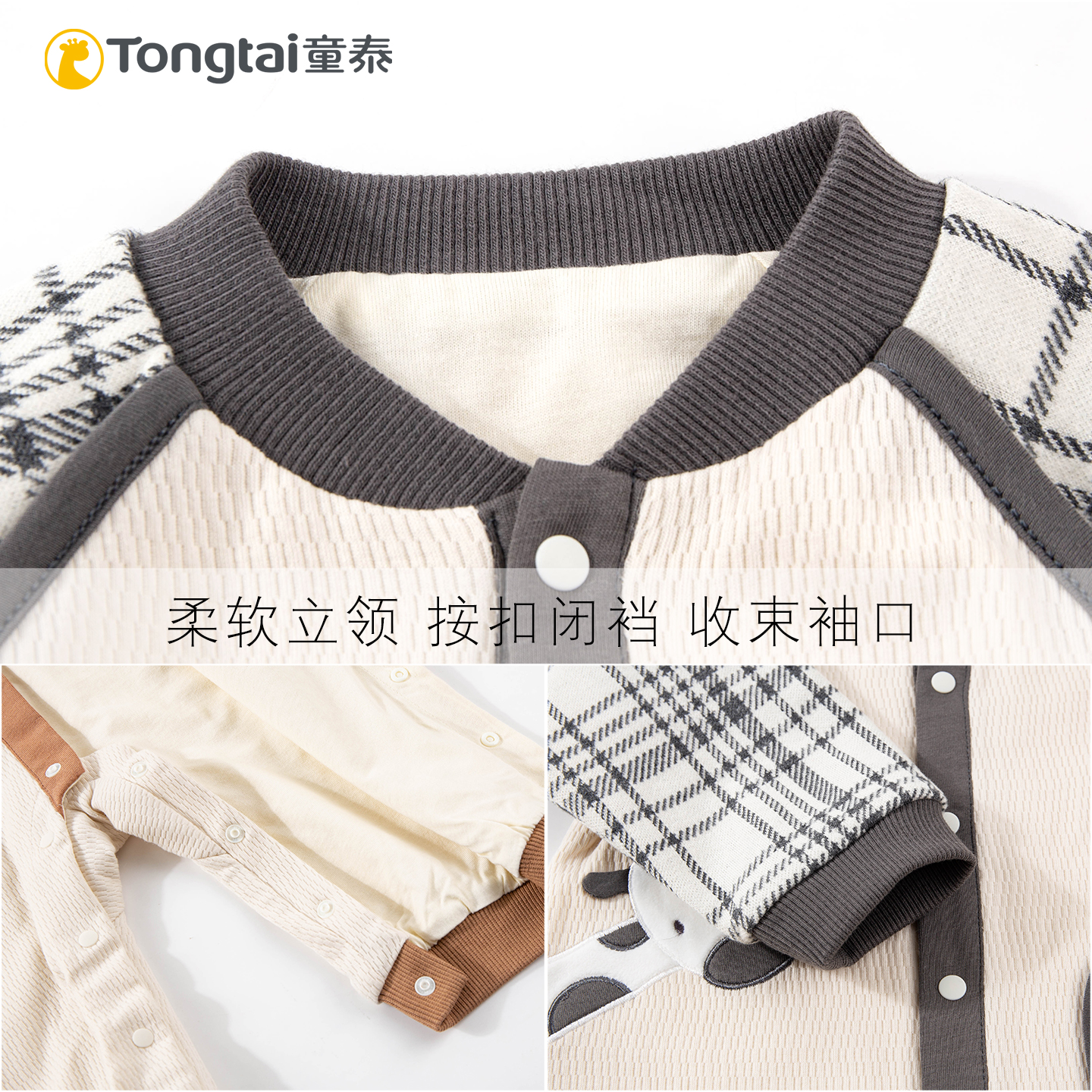 童泰婴儿秋冬连体衣男宝宝春秋季纯棉双层加里格子款超萌可爱哈衣