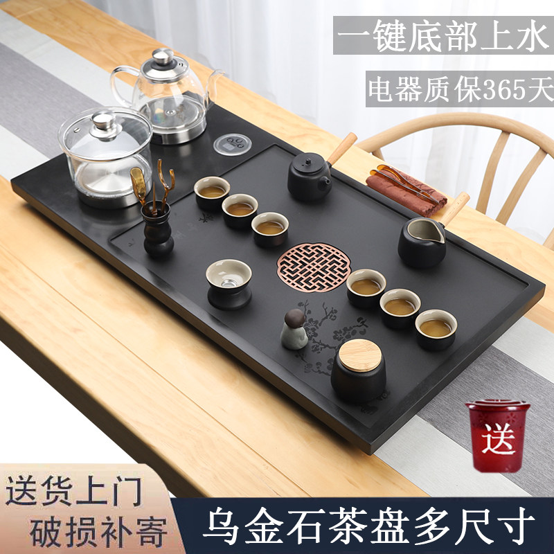 天然乌金石茶盘茶具套装全自动上水茶台烧水壶一体带电磁炉家用
