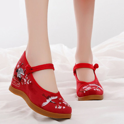 老北京布鞋古装鞋坡跟高跟绣花鞋古风汉服鞋子复古民族风舞蹈单鞋