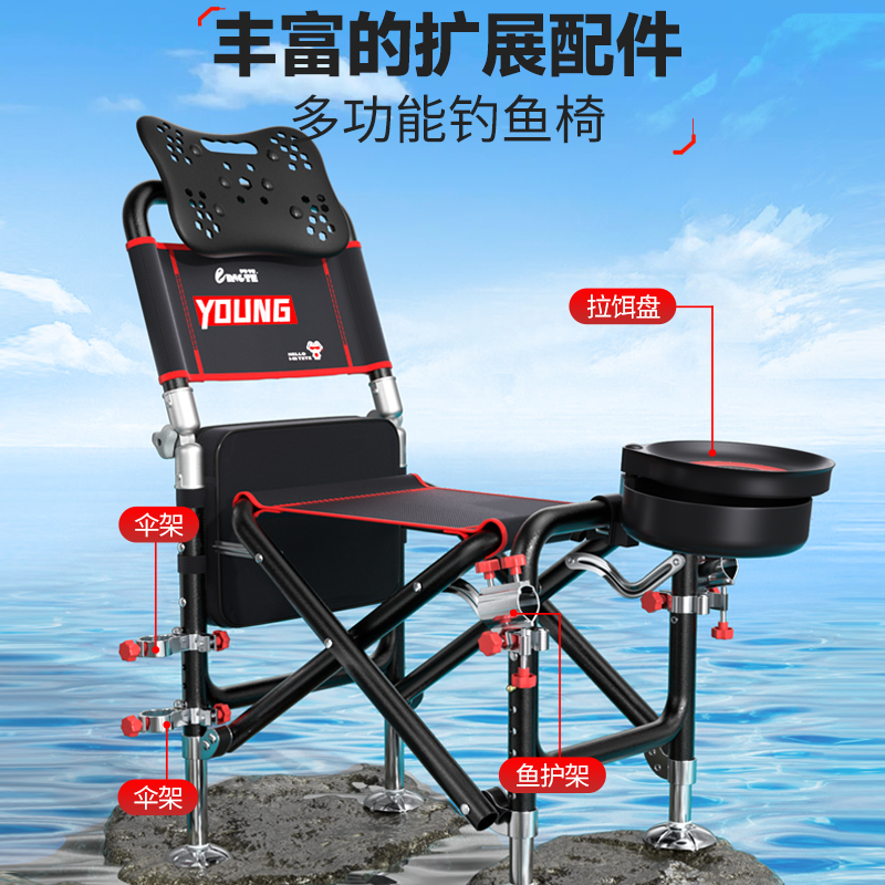 羚特 6档可躺钓椅新款钓鱼骑士椅子折叠便携野钓全地形轻便坐椅