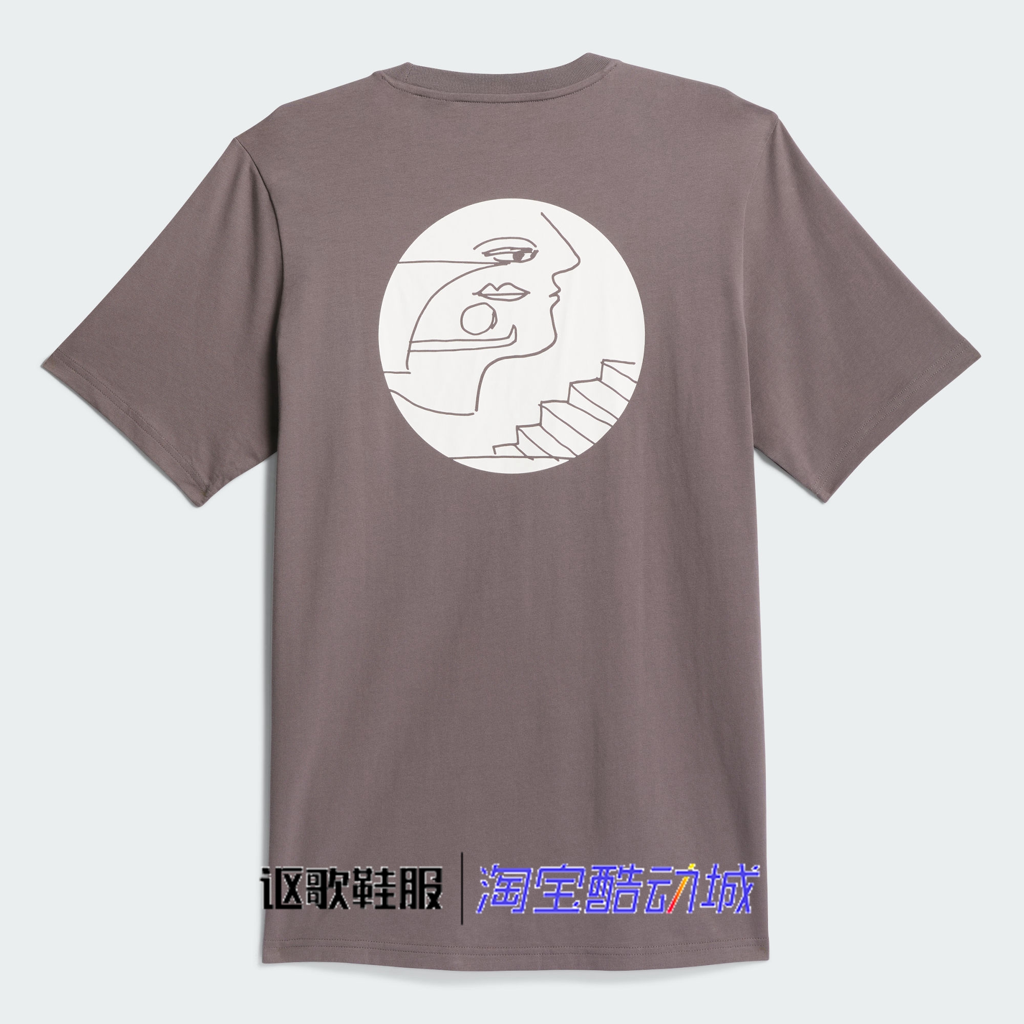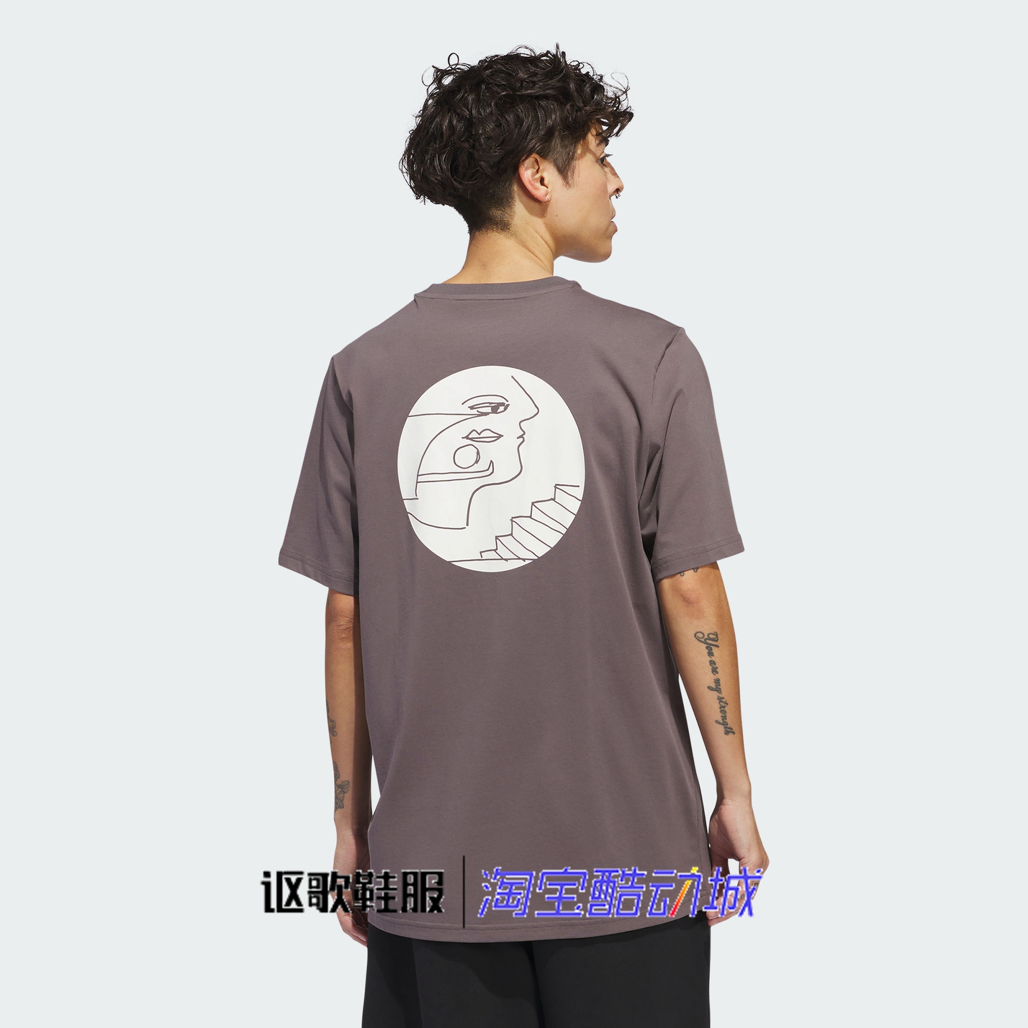 阿迪达斯男子新款纯棉舒适百搭印花运动休闲圆领短袖T恤IU0094
