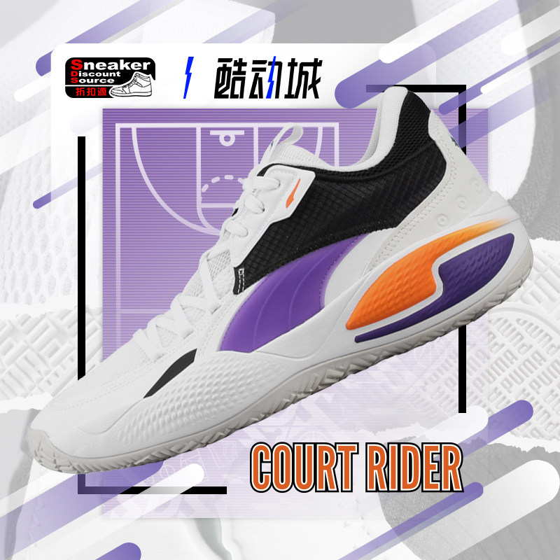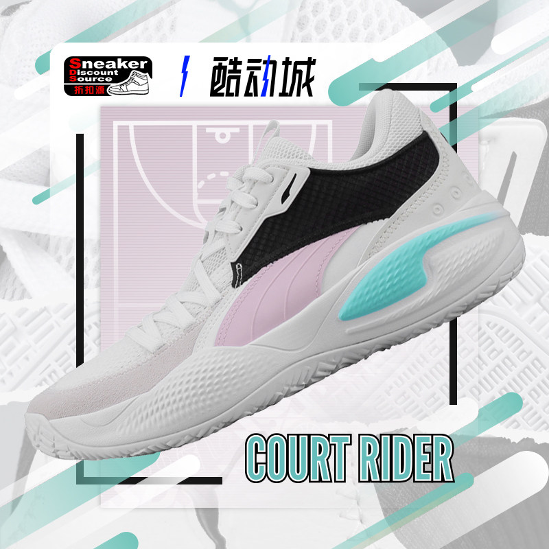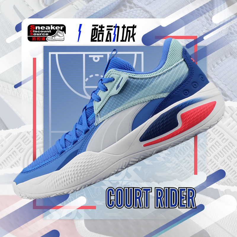 PUMA 彪马 Court Rider 蓝黑绿 男子低帮实战篮球鞋 195634-01