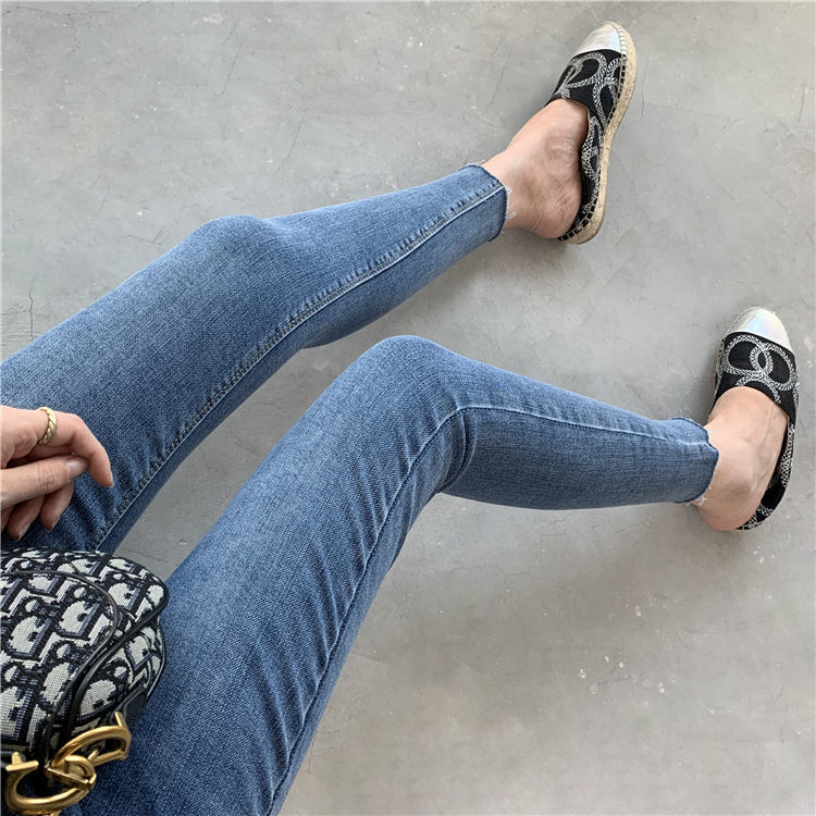 高腰弹力牛仔铅笔裤女2025春装新款紧身毛边小脚裤外穿打底九分裤