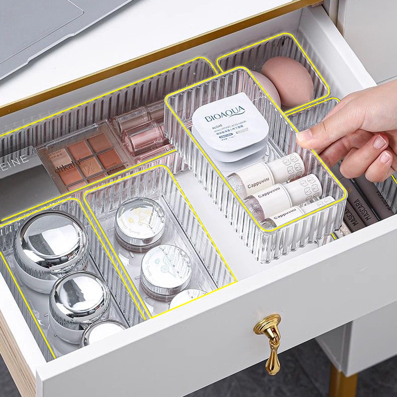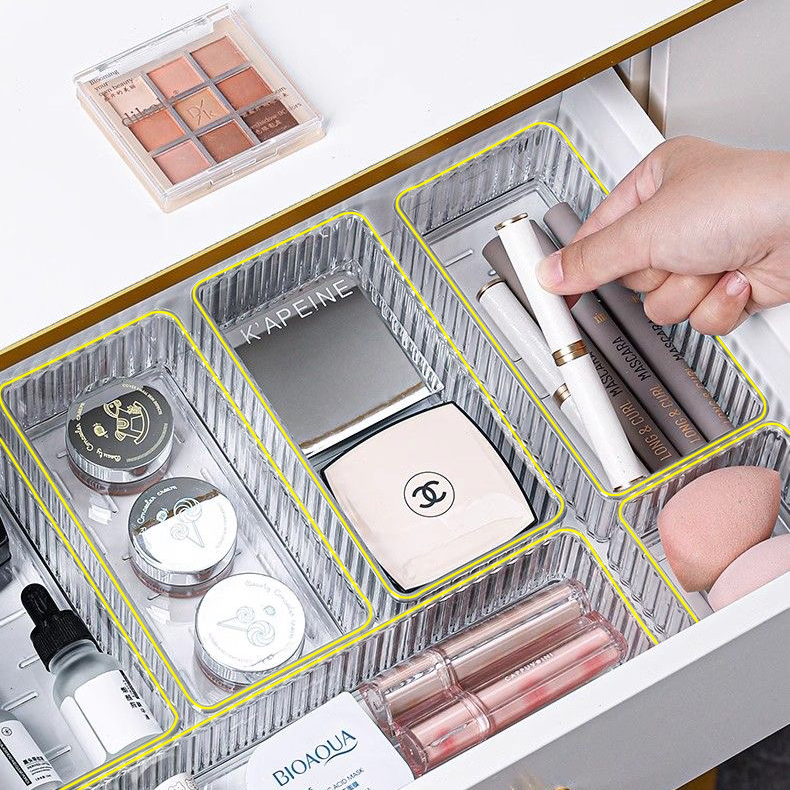 抽屉内置化妆品分格收纳盒整理盒梳妆台护肤品桌面杂物收纳盒透明