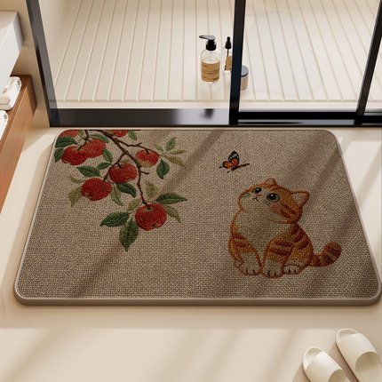 加厚亚麻编织浴室地垫卫生间猫咪