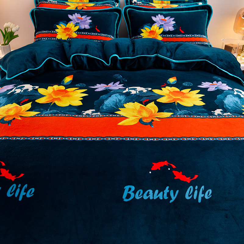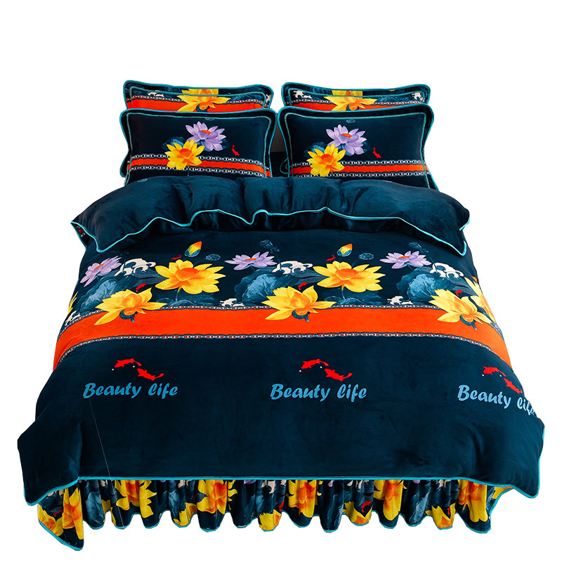 冬季加厚牛奶绒四件套加绒新款珊瑚绒被套床裙双面法兰绒床上用品