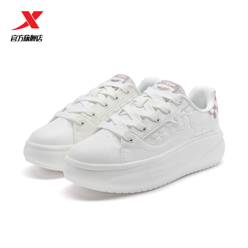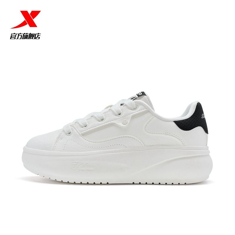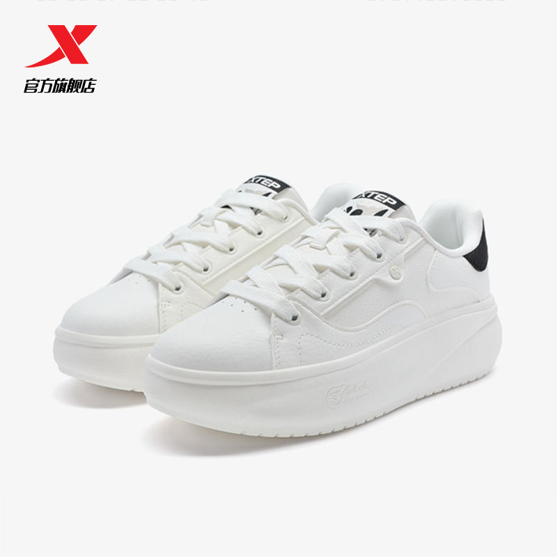特步女鞋板鞋鲸鱼系列2024春季新款厚底百搭鞋子轻便百搭小白鞋女