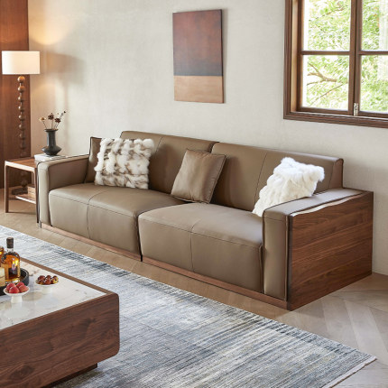 欣雅图北美黑胡桃木实木真皮沙发