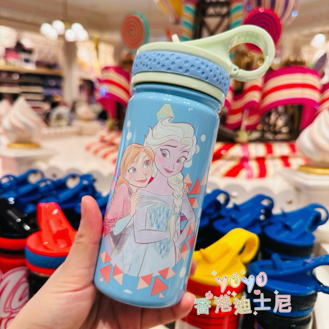 香港迪士尼 米奇米妮麦昆冰雪奇缘公主不锈钢卡通吸管杯 儿童水杯