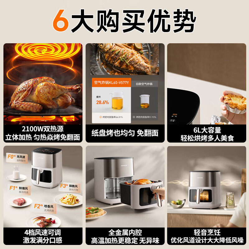 九阳空气炸锅家用新款大容量可视免翻面电炸锅多功能电烤箱烹饪机