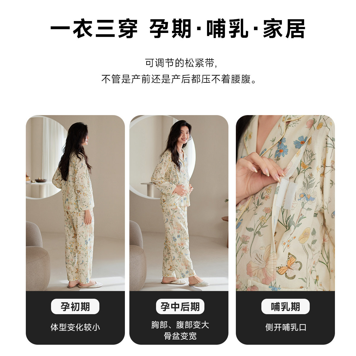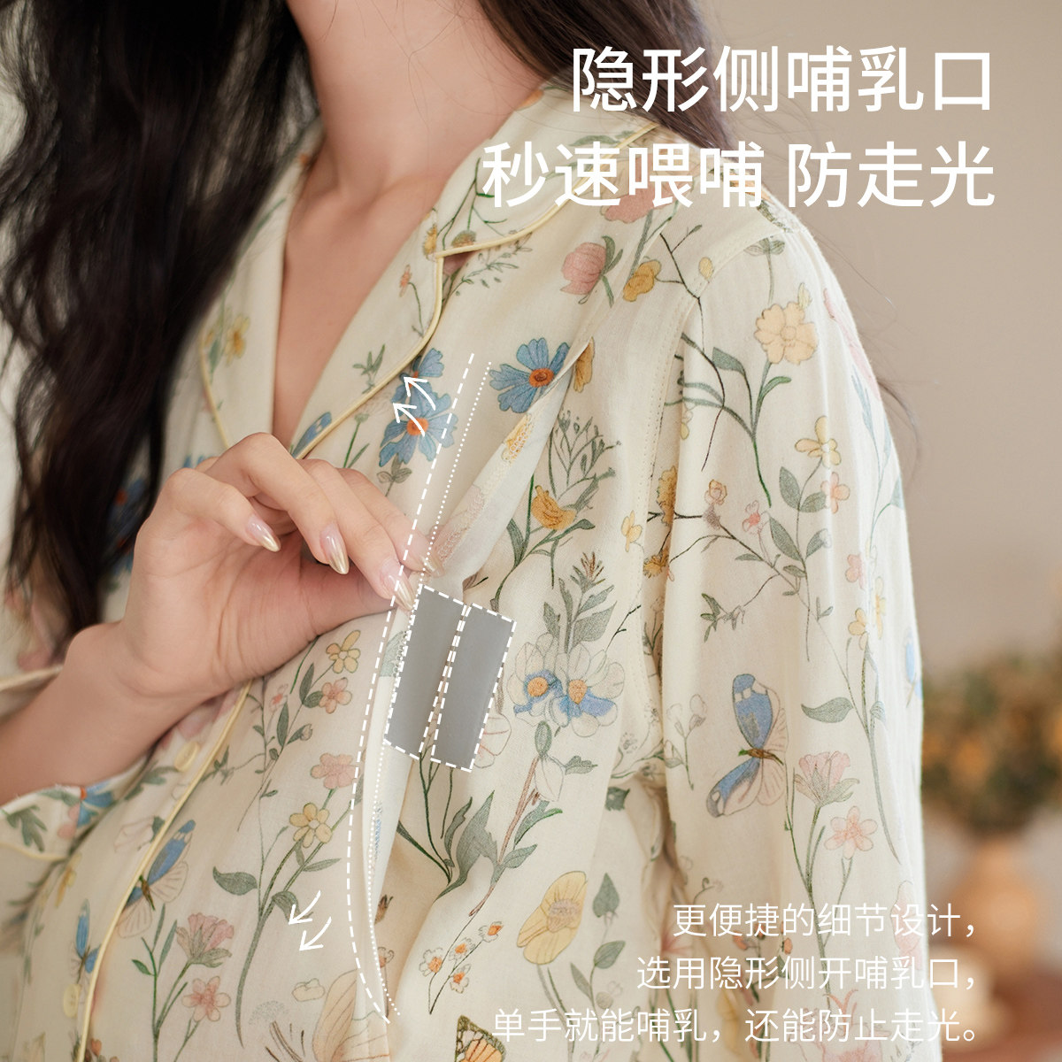 秋鹿纯棉双层纱布睡衣女士春夏家居服套装孕妇哺乳内衣月子服休闲
